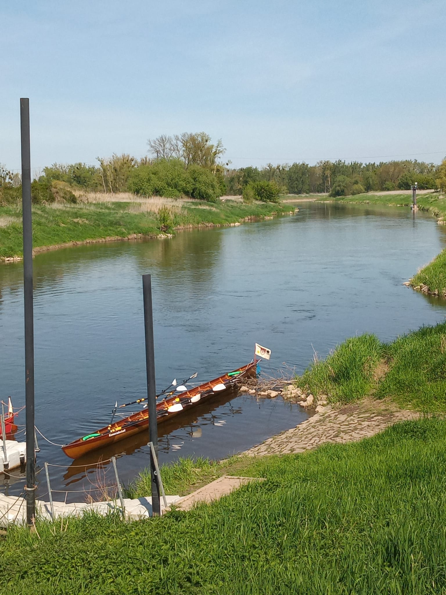So fiel auch gleich die erste Etappe von Merseburg nach Halle/S. Aufgrund „diverser Schleusenprobleme“ – um es mal vornehm auszudrücken – aus und wir konnten daher nur die zwei von der MRG zur Verfügung Boote „Kameradschaft“ und „Gemeinsamkeit“ abriggern, aufladen und zum Startpunkt Etappe 2 nach Halle-Trotha verfrachten.