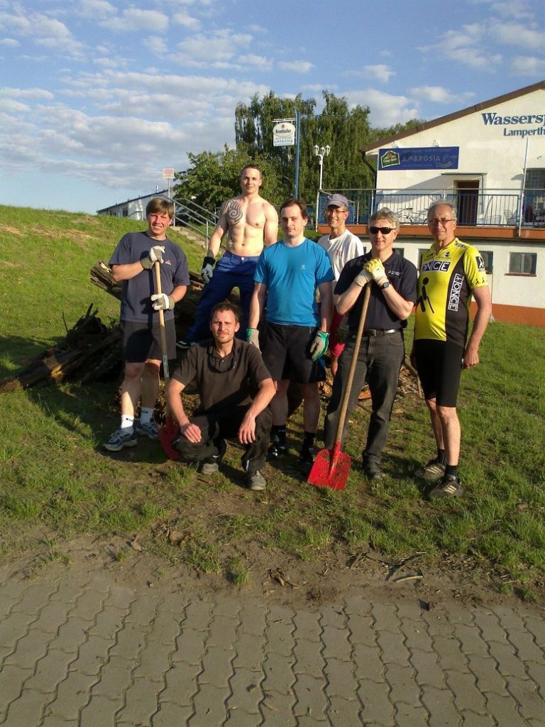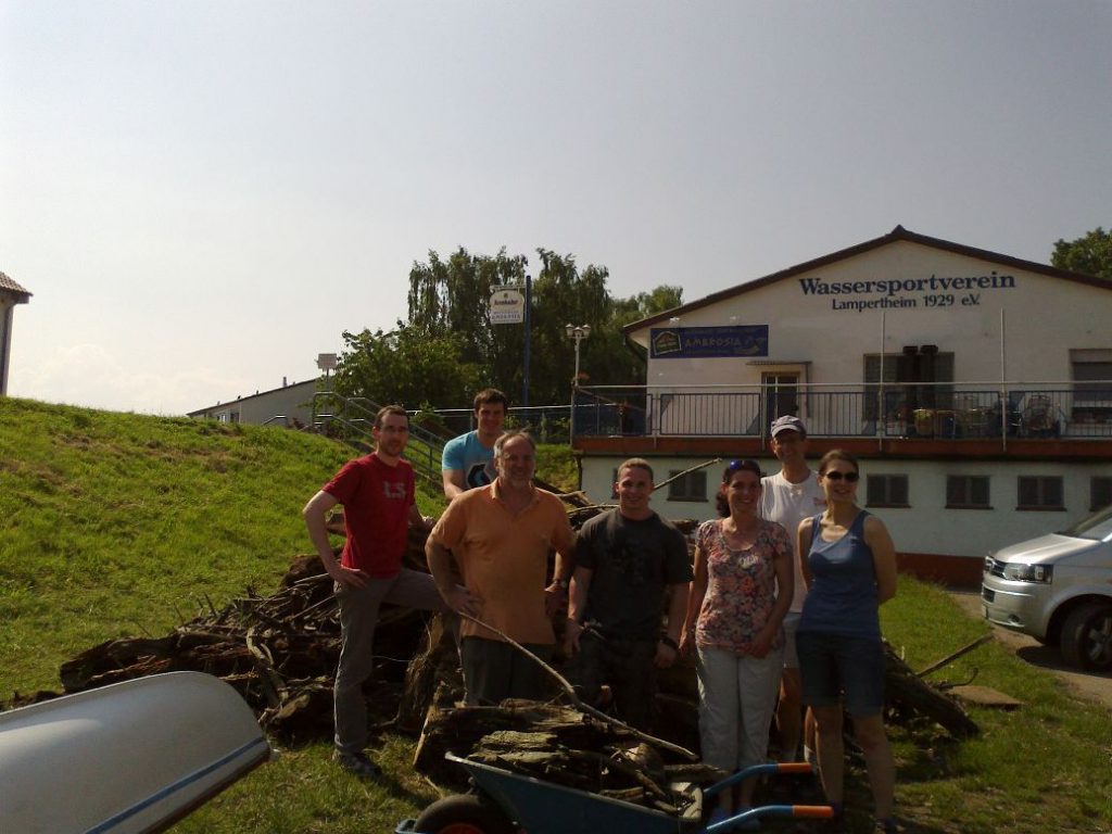Während des Hochwassers kontrollierte ich täglich den Wasserstand. Sobald der Bootsplatz wasserfrei war, wurde angefangen. 3 Tage lang wurde sehr hart gearbeitet und das in einer absoluten Gemeinschaftsaktion!