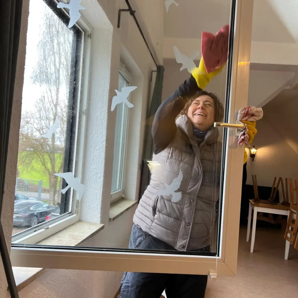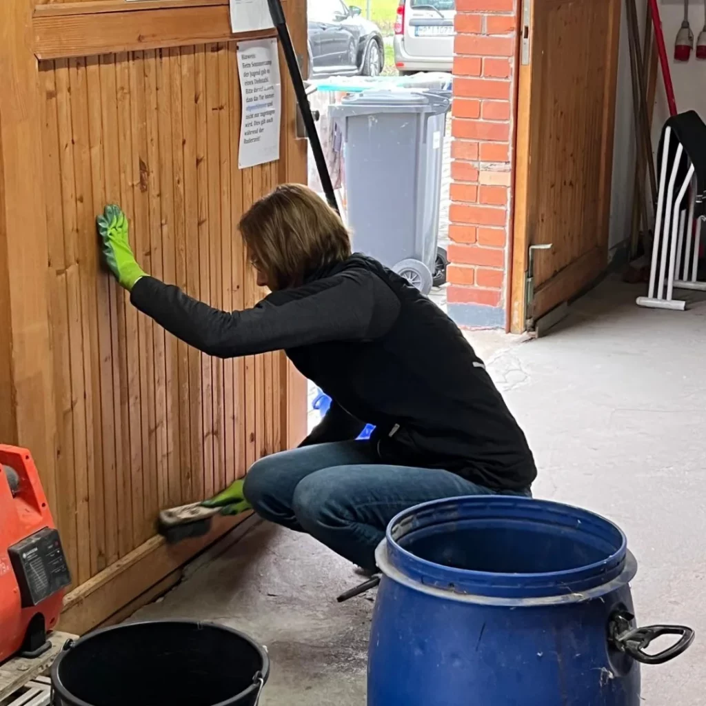 Bewaffnet mit Handschuhen, Eimer, reichlich Putzmittel usw. wurde gebürstet, geklopft, gesaugt. Sogar die Glasscheiben im Kraftraum wurden intensiv gereinigt. Achtung: Jetzt muss man dran denken, dass da Scheiben sind. Man sieht gar nichts mehr!