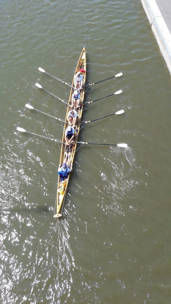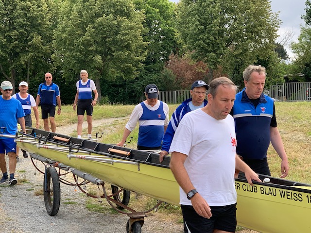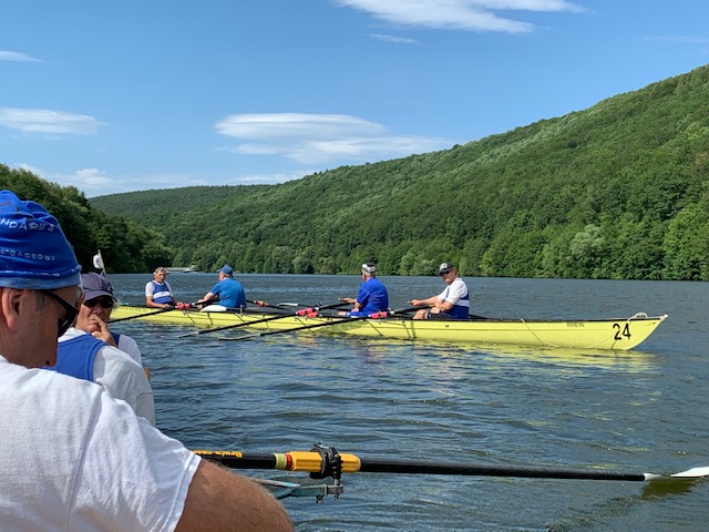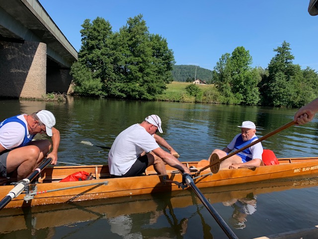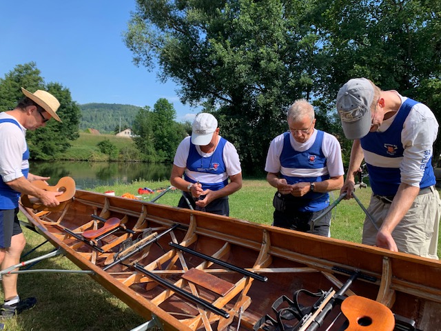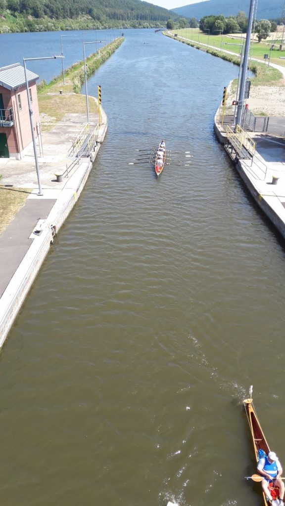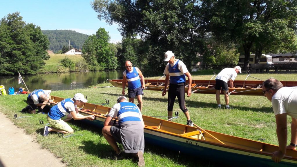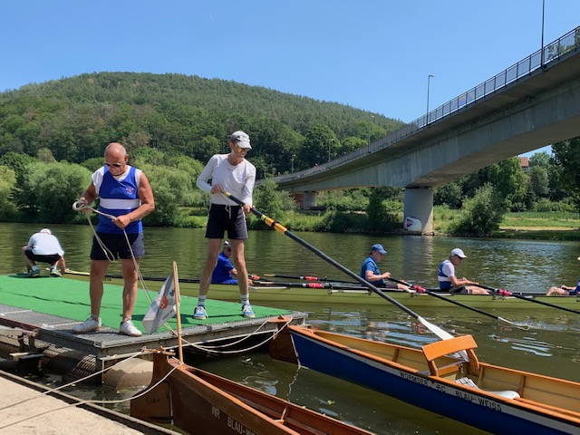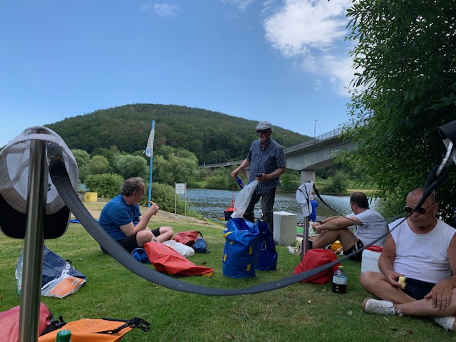 Kurz nach der Autobahnbrücke der A3 Frankfurt-Nürnberg beendeten wir unsere 2-tägige Rudertour noch vor Urphar. Nach dem Abriggern und Verladen der Boote war es die vorzügliche Küche auf dem Campingplatz „Schmid Camping“, die uns die Rückenschmerzen in der letzten Schleuse vergessen ließ.