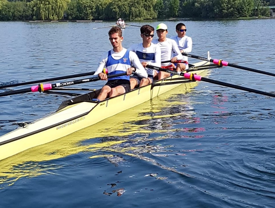Um neben dem Zweier-ohne auch eine weitere Startmöglichkeit zu haben, starteten Markus Feils und Jonas Burkhardt neben dem Zweier auch im Junioren-Vierer ohne. Während im Zweier mittlere Platzierungen errudert wurden, passte die neue Renngemeinschaft mit Marbach und Eberbach im Vierer auf Anhieb gut. Mit einem dritten Platz im Samstagrennen kamen sie sonntags in den ersten gesetzten Lauf. Nach 1000 Meter mussten sie zwar den Anschluss abreißen lassen, zeigten aber Perspektive und werden nach einem Trainingslager bei der nächsten Juniorenregatta in Hamburg noch einmal angreifen, um sich für die Meisterschaften zu empfehlen.