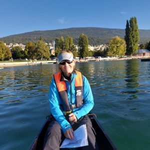Wir glauben eigentlich, ganz gut am Start zu liegen, später stellt sich aber raus, da waren wir vielleicht etwas zu vorsichtig. Aber egal, die Strecke ist lang, wir haben noch einige Kilometer vor uns und so pflügen wir uns unseren Weg durch das Feld mit ruhigen Schlägen. Unsere Freunde vom Mannheimer RC sind auch wieder da und haben es sich wieder als erklärtes Ziel gesetzt, uns dieses Mal zu schlagen, somit ist auch unser Ehrgeiz geweckt (wenn man das musste ;-)). Sehen können wir sie nicht, so dass wir einfach auf unseren konstanten Speed setzen, was ja auch letztes Jahr auf der Flusstrecke ganz gut geklappt hat. Im Ziehlkanal liefern wir dann die beste Passage ab, auf altrheinartigem Wasser können wir es halt am besten. Unsere beiden treuen Landbegleiter Klaus und Bani rufen uns den stets kleiner werdenden Rückstand zu Mannheim zu und nach ca. 11 km ziehen wir dann doch recht locker vorbei. Im Bieler See müssen wir dann der Intensität ein bisschen Tribut zollen und auch die Wellen machen uns ein wenig zu schaffen. Trotzdem schaffen wir es noch, einen Frauenachter im Zaum zu halten, nur der Mannheimer Doppelachter entwischt uns…