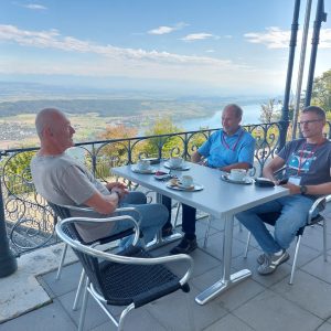Ab nach Magglingen in die uns lieb gewonnene BASPO Sportstätte, Unterbringung im Swiss Olympic House. Die Parkregeln sind irgendwie alle neu, aber selbst die Mitarbeiter sind nicht sehr zufrieden damit („Aber uns fragt ja keiner…“). Den leicht verspäteten Rest der Wormser Bilac-Mannschaft treffen wir beim traditionellen Dinner direkt am See, dieses Mal bei überragend lauschigen Temperaturen, so dass wir den Sonnenuntergang über dem Bieler See bewundern können.