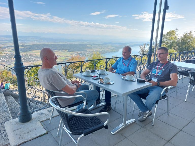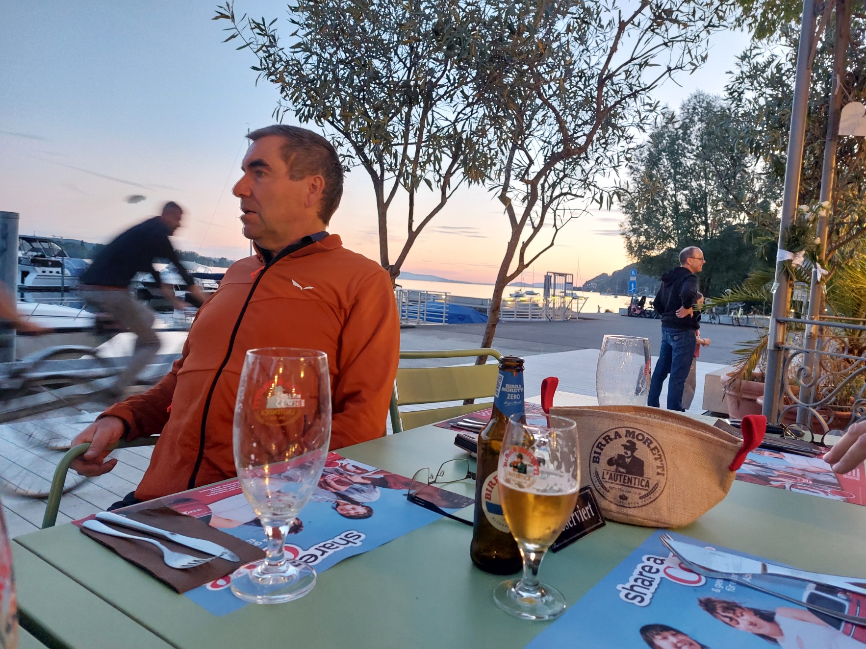Ab nach Magglingen in die uns lieb gewonnene BASPO Sportstätte, Unterbringung im Swiss Olympic House. Die Parkregeln sind irgendwie alle neu, aber selbst die Mitarbeiter sind nicht sehr zufrieden damit („Aber uns fragt ja keiner…“). Den leicht verspäteten Rest der Wormser Bilac-Mannschaft treffen wir beim traditionellen Dinner direkt am See, dieses Mal bei überragend lauschigen Temperaturen, so dass wir den Sonnenuntergang über dem Bieler See bewundern können.