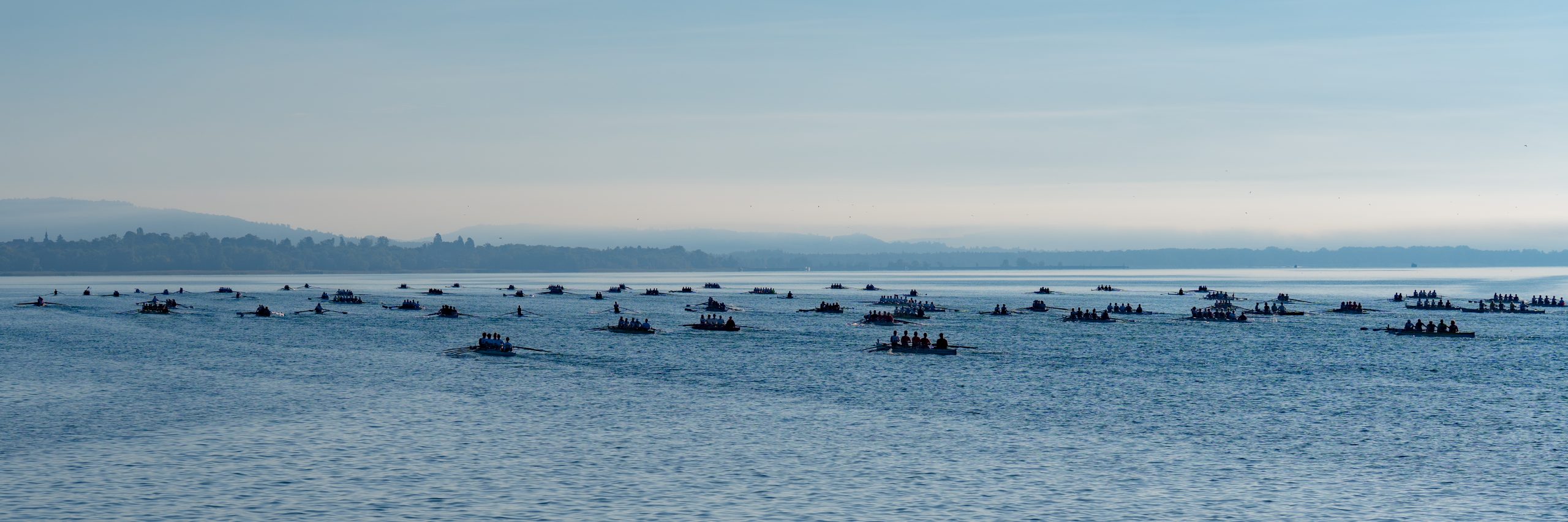 Neuer Teilnehmerrekord bei der Bilac: das schöne Wetter zog über 110 Boote an, viele Kleinboote sind am Start, darunter auch 3 Kanus und (sehr beeindruckend) ein Zweier Ohne. Der Start liegt dieses Mal etwas näher am Ziel, so dass sich die Strecke gegenüber der „Original Seestrecke“ etwas verkürzt auf knapp unter 30 km. Zudem gibt es nun auch hier sogenannte Startblöcke, in die die Boote einsortiert werden. Da halten wir uns vielleicht etwas zu sklavisch dran, aber auf der anderen Seite macht es immer Riesenlaune an vielen Booten vorbei zu ziehen – echtes Regatta Feeling kommt auf.