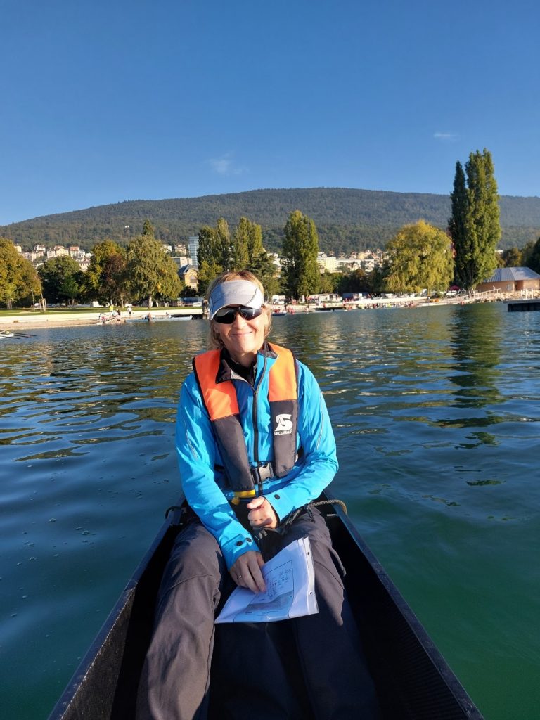 Wir glauben eigentlich, ganz gut am Start zu liegen, später stellt sich aber raus, da waren wir vielleicht etwas zu vorsichtig. Aber egal, die Strecke ist lang, wir haben noch einige Kilometer vor uns und so pflügen wir uns unseren Weg durch das Feld mit ruhigen Schlägen. Unsere Freunde vom Mannheimer RC sind auch wieder da und haben es sich wieder als erklärtes Ziel gesetzt, uns dieses Mal zu schlagen, somit ist auch unser Ehrgeiz geweckt (wenn man das musste ;-)). Sehen können wir sie nicht, so dass wir einfach auf unseren konstanten Speed setzen, was ja auch letztes Jahr auf der Flusstrecke ganz gut geklappt hat. Im Ziehlkanal liefern wir dann die beste Passage ab, auf altrheinartigem Wasser können wir es halt am besten. Unsere beiden treuen Landbegleiter Klaus und Bani rufen uns den stets kleiner werdenden Rückstand zu Mannheim zu und nach ca. 11 km ziehen wir dann doch recht locker vorbei. Im Bieler See müssen wir dann der Intensität ein bisschen Tribut zollen und auch die Wellen machen uns ein wenig zu schaffen. Trotzdem schaffen wir es noch, einen Frauenachter im Zaum zu halten, nur der Mannheimer Doppelachter entwischt uns…
