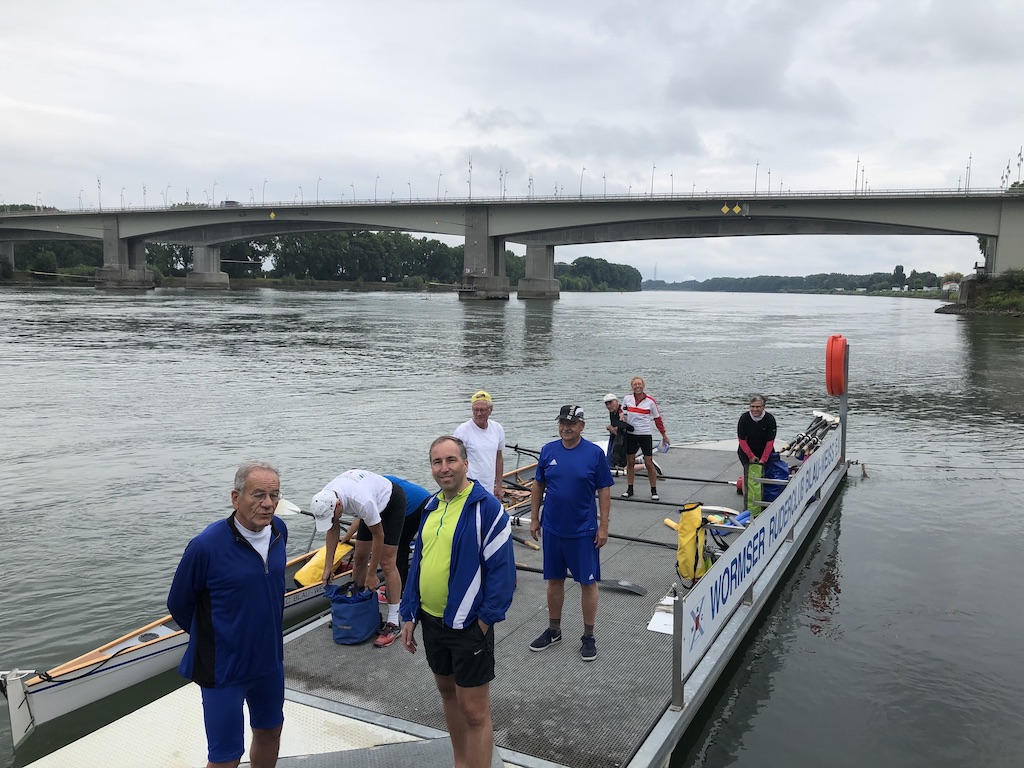 Eine der ersten Touren nach Lockerung der Einschränkungen führte von Worms zur Mainzer Rudergesellschaft mit traditionellem Zwischenstopp im Rheinrestaurant Oppenheim. Michael und Doris hatten 2 Vierer zusammengestellt. Gäste aus Ludwigshafen und Speyer waren auch zu dieser Corona-freien oder besser Corona-befreienden Tour eingeladen. Das Wetter war nicht ganz so sommerlich wie gewünscht. Aber immerhin – der bedeckte Himmel hielt sich bei frischen 15 Grad geschlossen, so dass wir trocken unser Ziel erreichten.