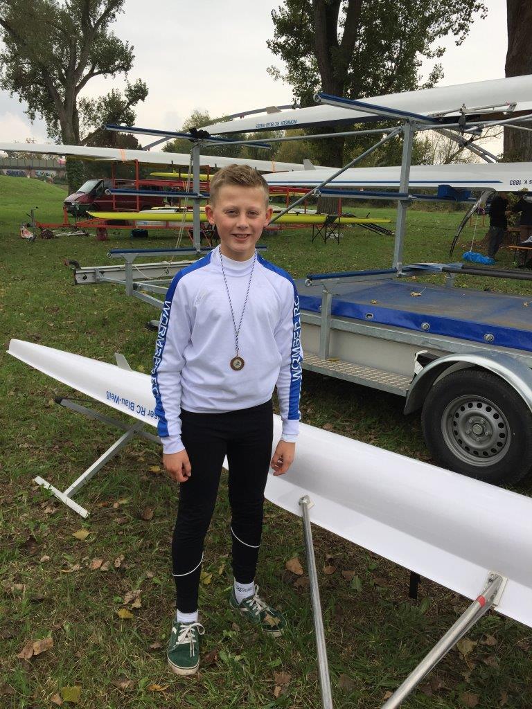 Im weiteren Rennverlauf führte dann auch der zweite Wormser Ruderer – Lukas Schambach – in seinem Einer-Rennen lange Zeit das Teilnehmerfeld an; musste sich jedoch kurz vorm Ziel noch seinem Konkurrenten aus Breisach geschlagen geben.