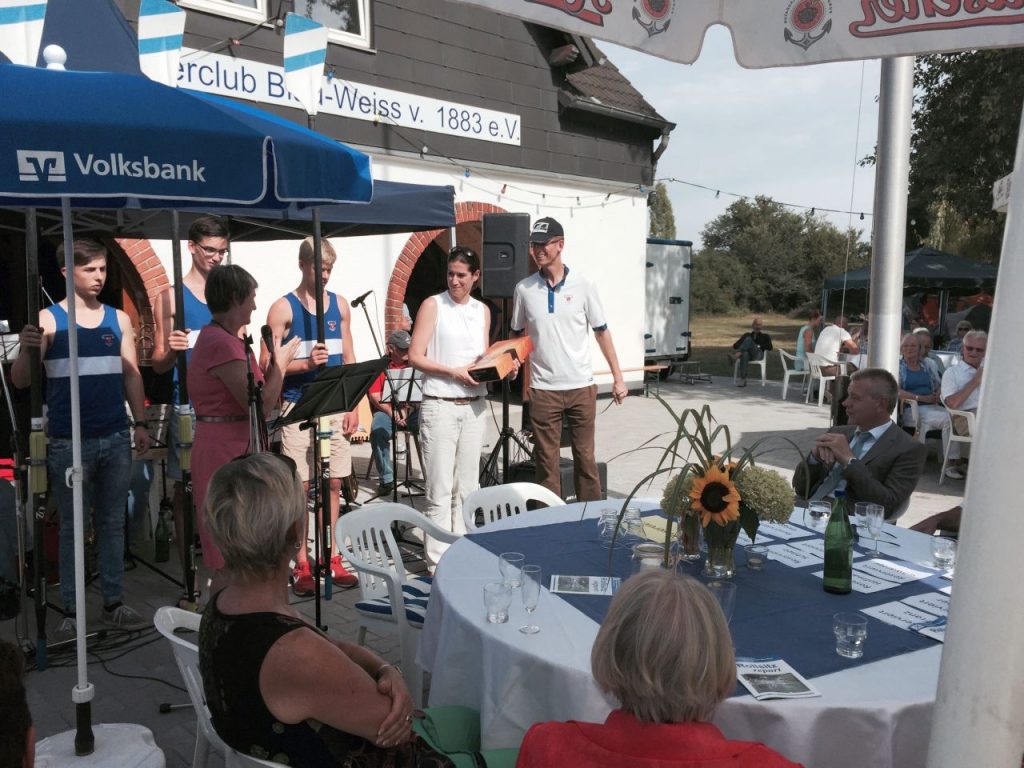Anlässlich der Erweiterung der Bootshalle in Lampertheim feierten wir am 01.08.2015 auf unserem Gelände am See. Viele geladene Gäste, Mitglieder und Angehörige kamen festlich gekleidet. Unsere Vorsitzende Sabine Teigland hielt die Festrede, die wir an dieser Stelle ungekürzt wiedergeben.