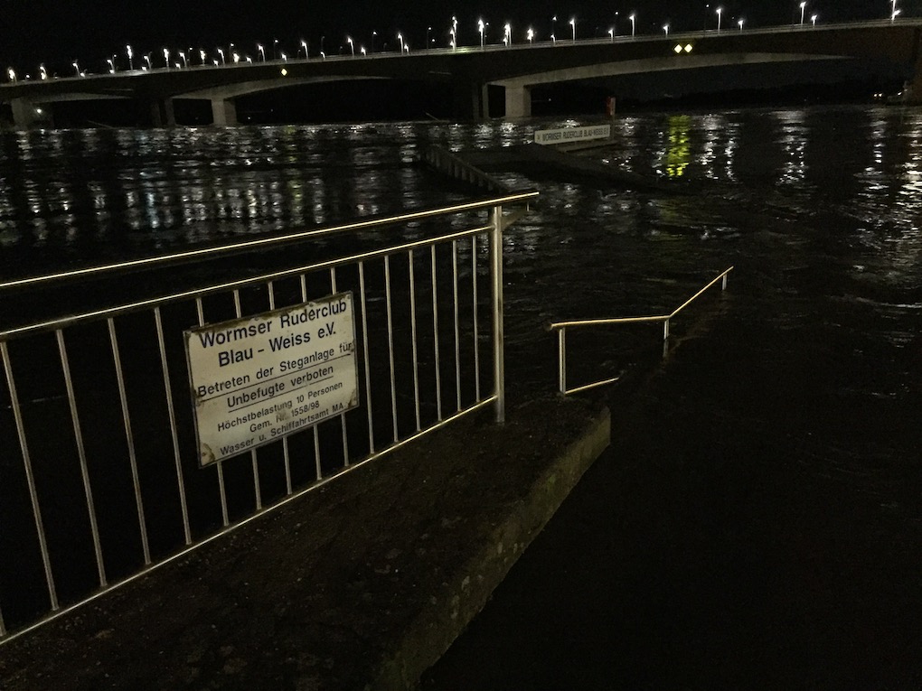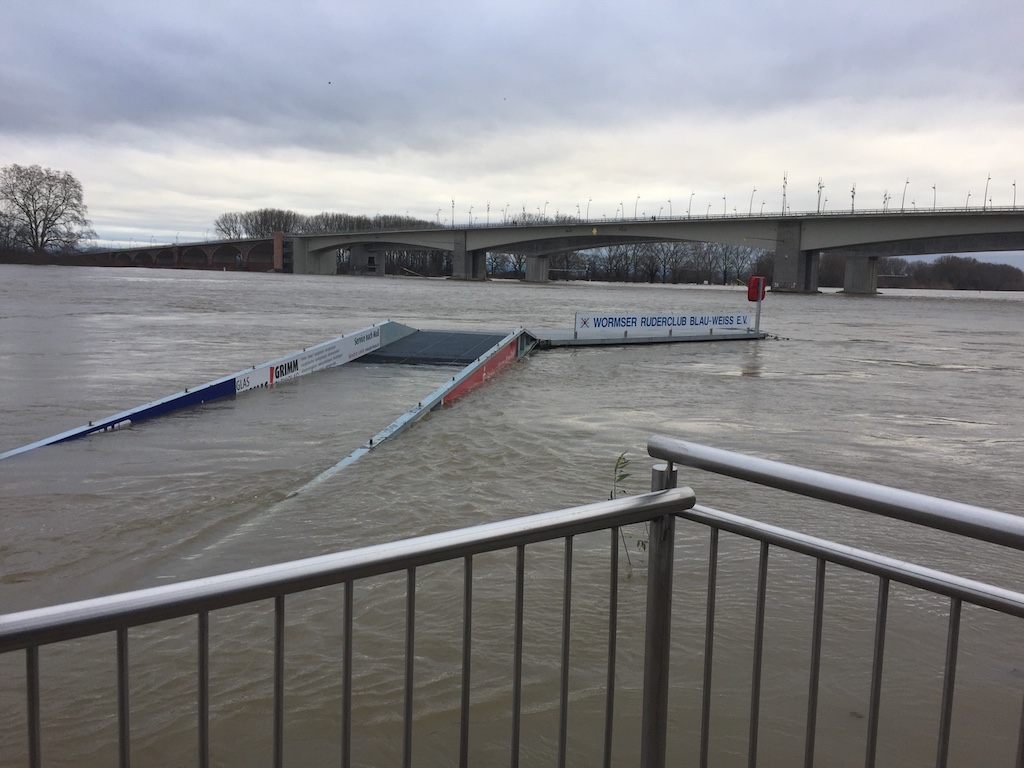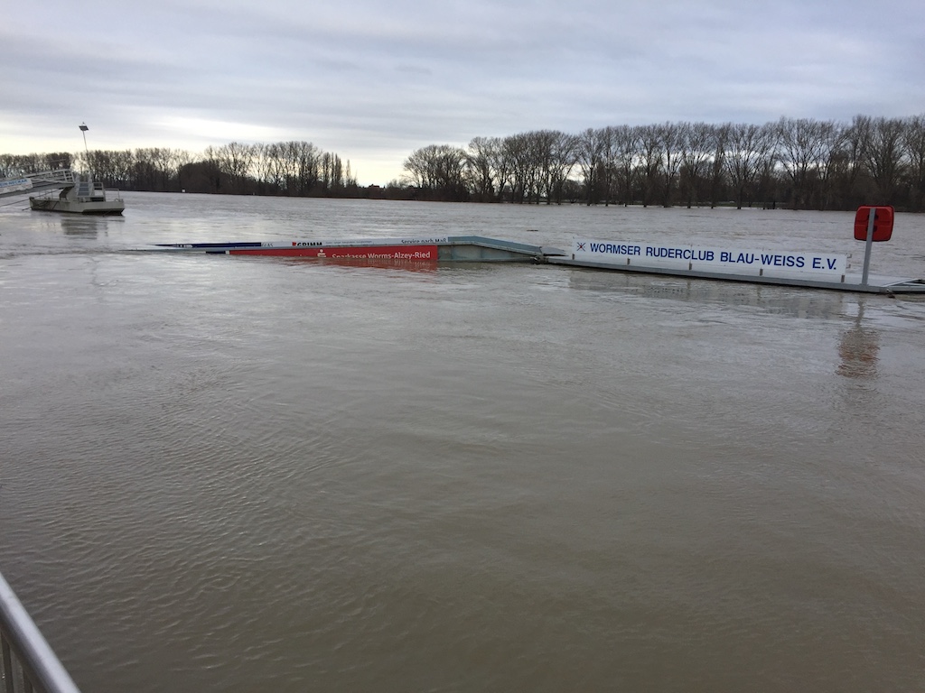 Mit 622 cm hatte der Pegel des Rheins in Worms am Morgen des 07.01 einen bemerkenswerten Hochstand. Dann ging der Pegel wieder zurück, erreichte aber 14 Tage später mit 635 cm seine diesjährige Höchstmarke in 2018.