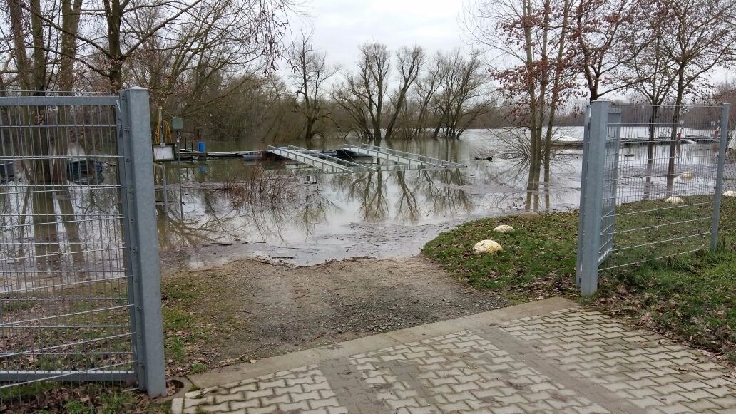 Unser neuer Steg hält! Bei den Hochwasserständen im Januar haben die Verankerungen und Stahlseile unseres neuen Stegs viel zu halten. Die Kräfte und Gegenkräfte sind richtig berechnet und das Team um Waldi hat bei der Installation ganze Arbeit geleistet.