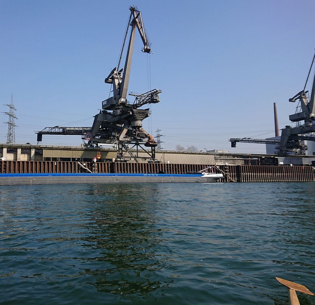 Nach einer Schleife im Reffenthal (Angelhofer Altrhein) ging es in den Ketscher Altrhein. Hier musste eines der Boote über eine Sandbank getreidelt werden. Im Rhein passierten wir die altbekannten Fähren und Sehenswürdigkeiten (Kraftwerke, Häfen).