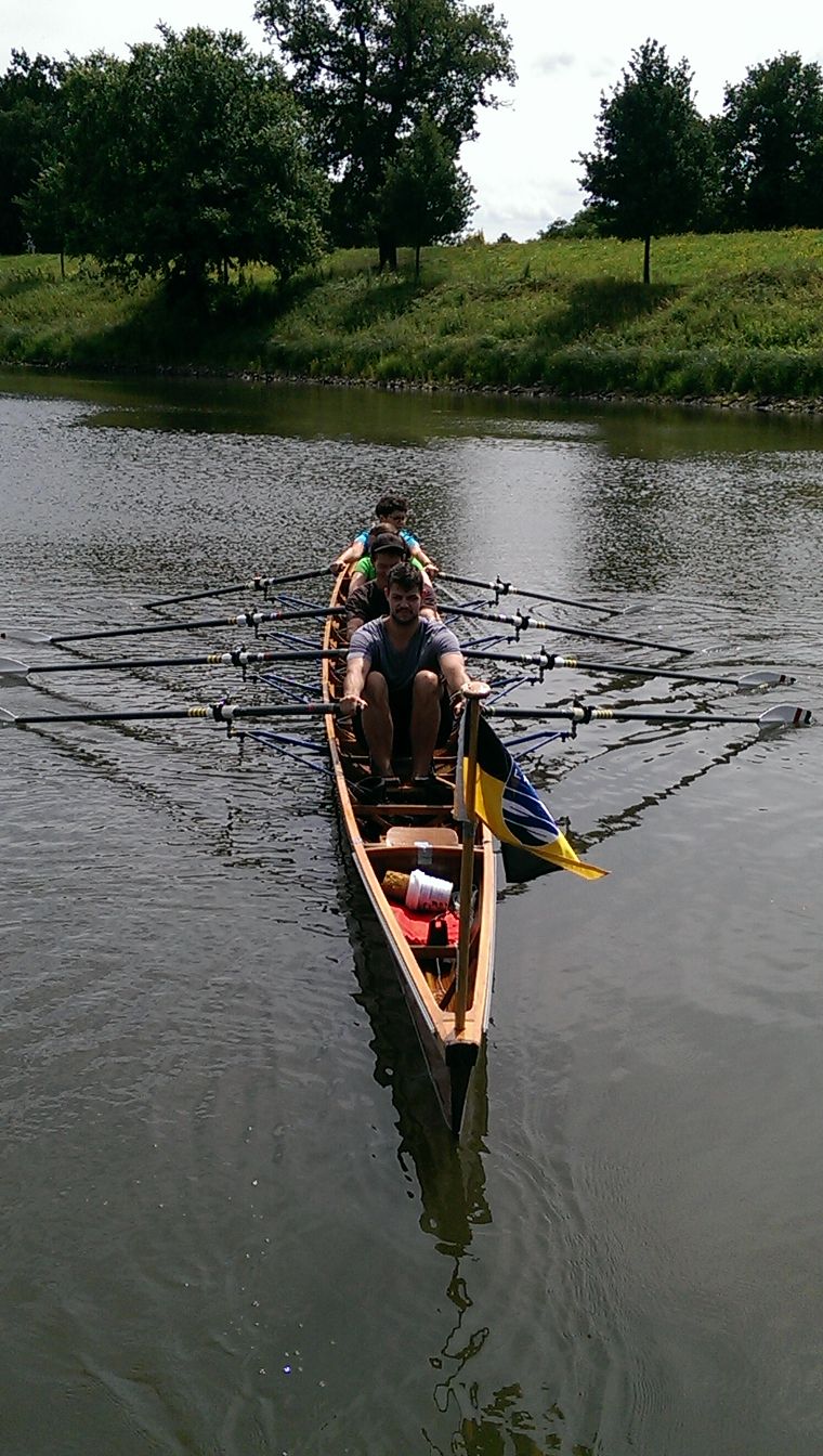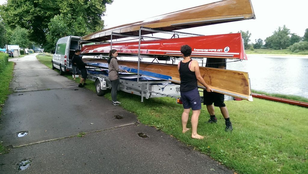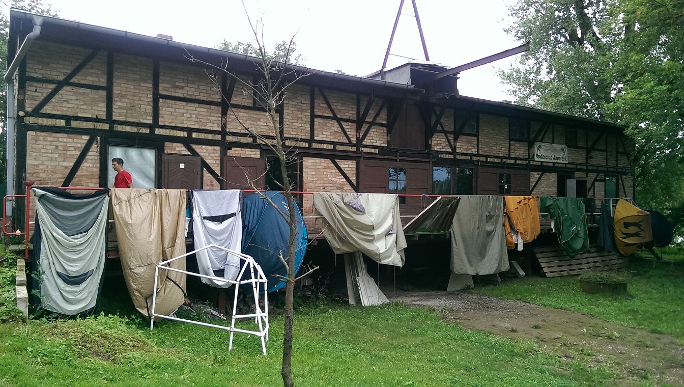 Wir begannen das Kennenlern- Wochenende mit Bauchweh und zum Schluss freuten wir uns alle auf das Camp. Dank großartiger Hilfe des Landesruderverbandes Baden-Württemberg konnte Oskar mit Sprinter und 6 Booten auf dem Hänger ab Freiburg starten. Uschi wartete in Bad Hersfeld und fuhr die 2. Etappe bis Deslau-Roßlau. Unser 1. Stopp war das schöne Vereinsgelände von Junkers Paddelgemeinschaft. Dort trafen wir uns alle, bauten das Camp auf und lernten unseren Camp-Leiter, Vincent Schmock, kennen. Klar wurden dann erstmal die gesamten Pläne ab- und durchgesprochen.
