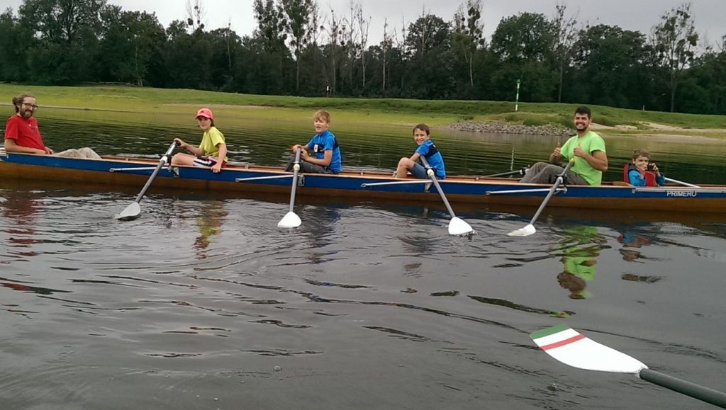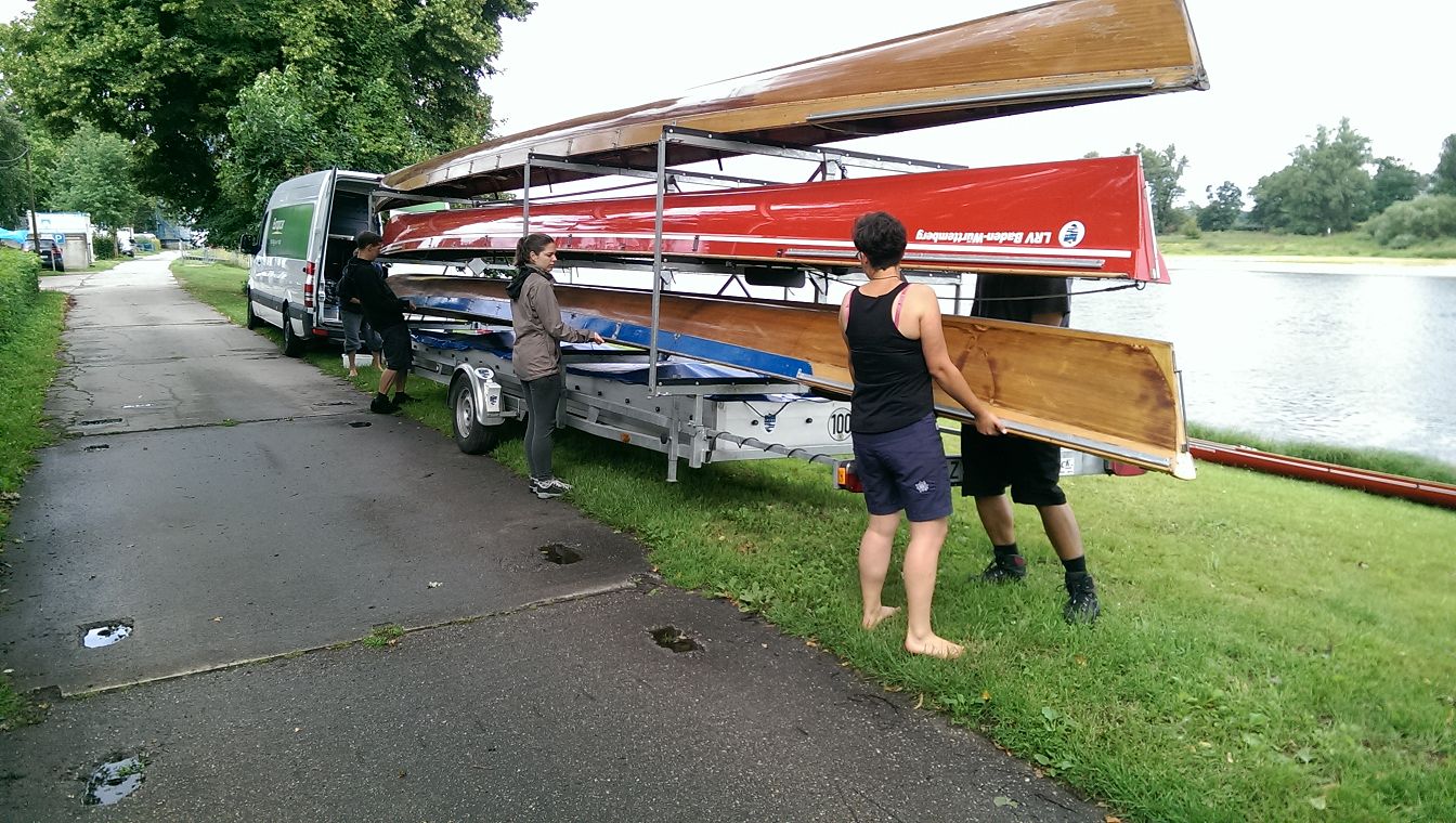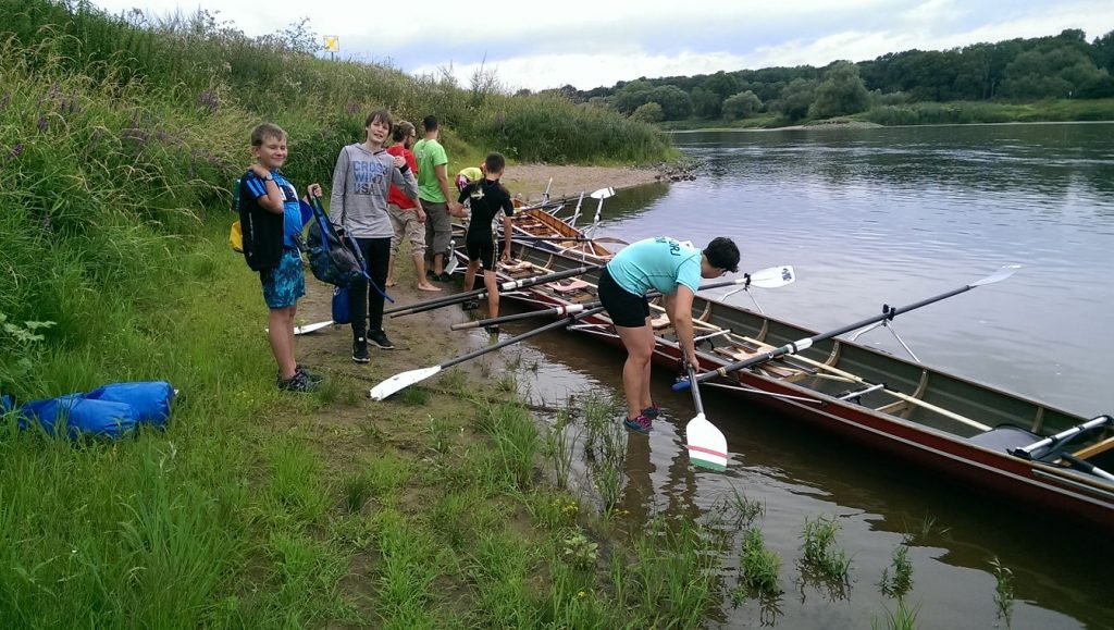 Tag 2: Kennenlernen der Kinder und erste Einführungen in das Rudern. Dazu mussten natürlich erstmal die Boote vom Hänger geholt und wieder aufgeriggert werden. Die Kids waren mit Begeisterung dabei und auch Hanna und Peter erwiesen sich als geschickte „Aufriggerer“.