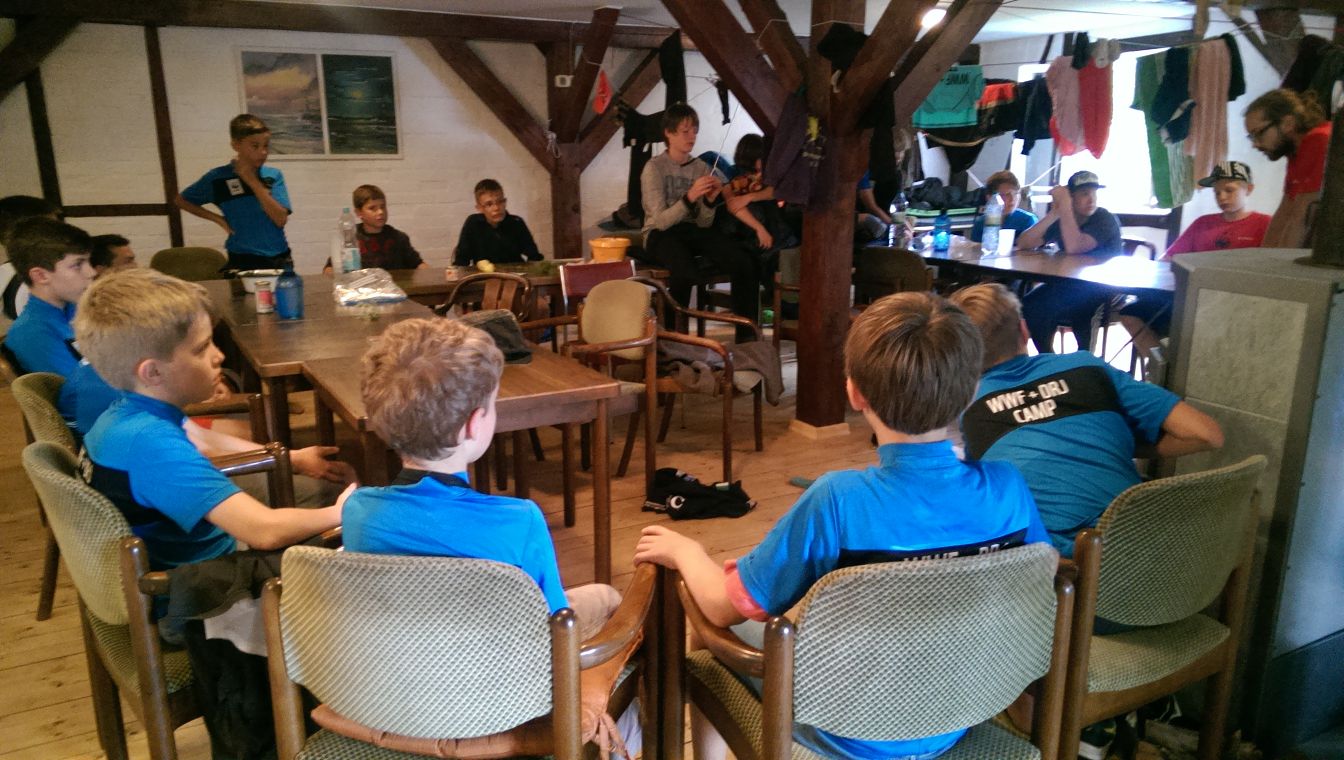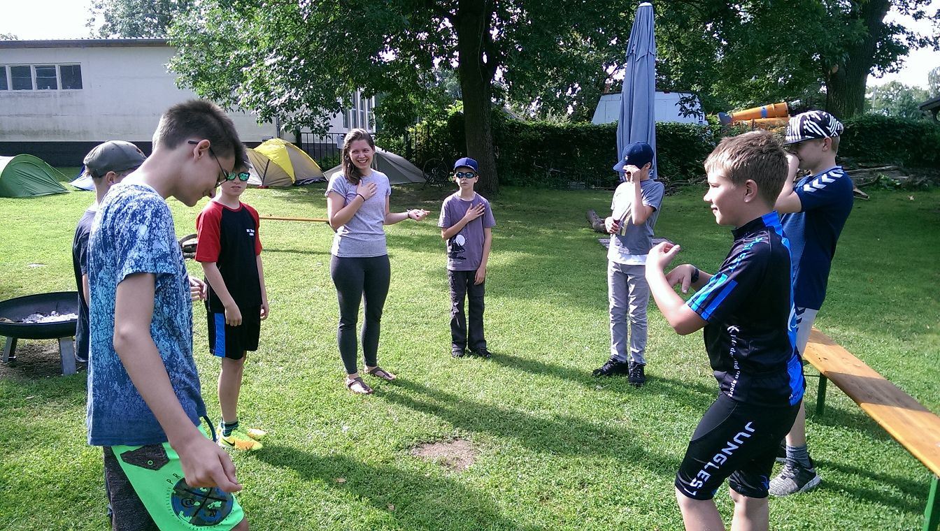 Am nächsten Tag gegen 16 Uhr erschienen dann die Kids mit Eltern (18 Jungen, 2 Mädchen). Die Aufregung war erkennbar groß; so wie es auch sein sollte. Nachdem alle an- und die Eltern wieder abgereist waren, startete das offizielle Camp. Noch wurde diskutiert wie und wo man sein Zelt aufstellen sollte, wie die Duschen waren und vor allen Dingen: Was gibt es wann zu essen! Das entwickelte sich im Laufe der Woche zu einer eingespielten Routine.