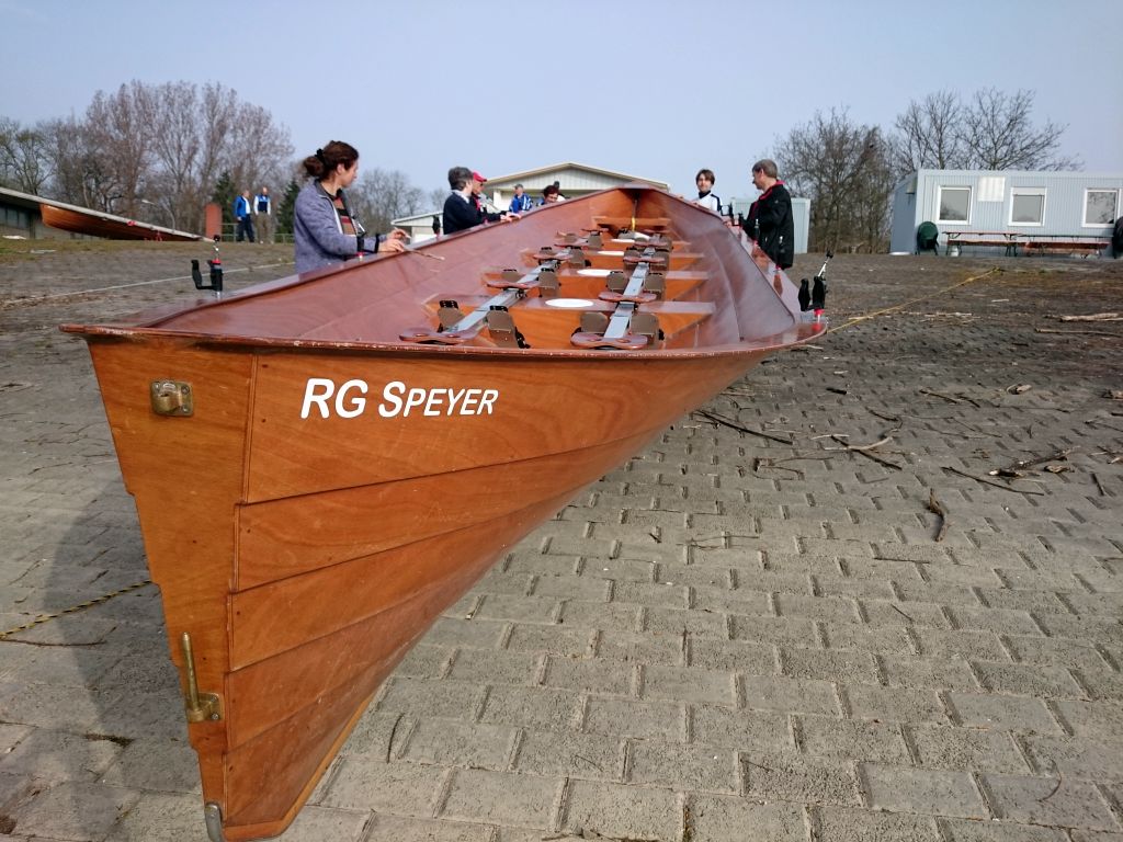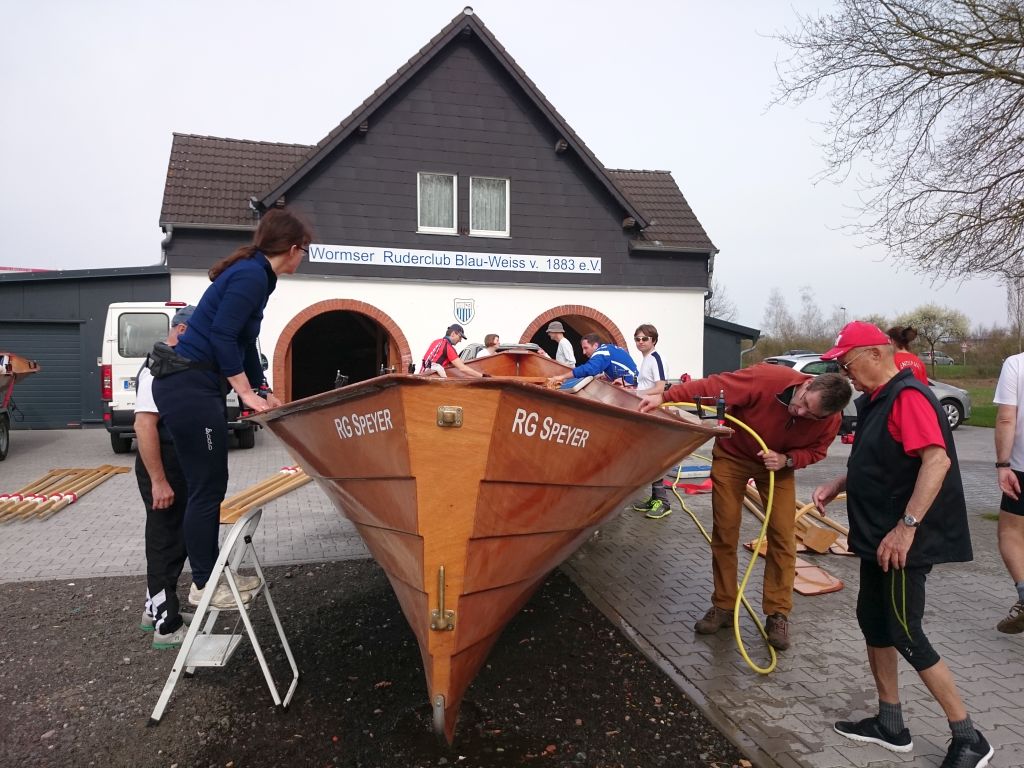 Am Weißen Sonntag (3. April 2016) ging es auf Einladung der Rudergesellschaft Speyer mit zwei Kirchbooten auf den Rhein. Die Fahrt sollte vom Reffenthal nach Worms bzw. Lampertheim gehen.