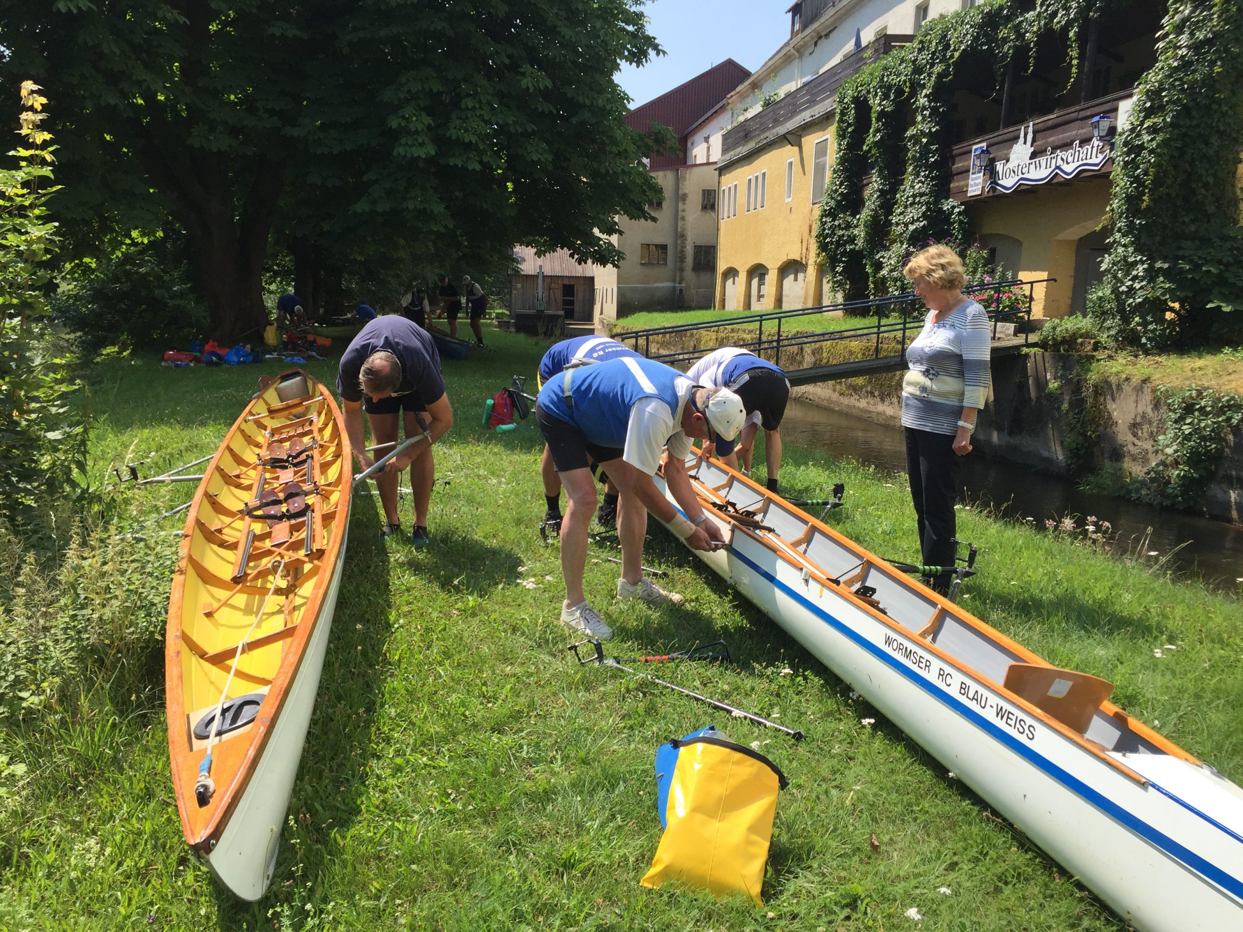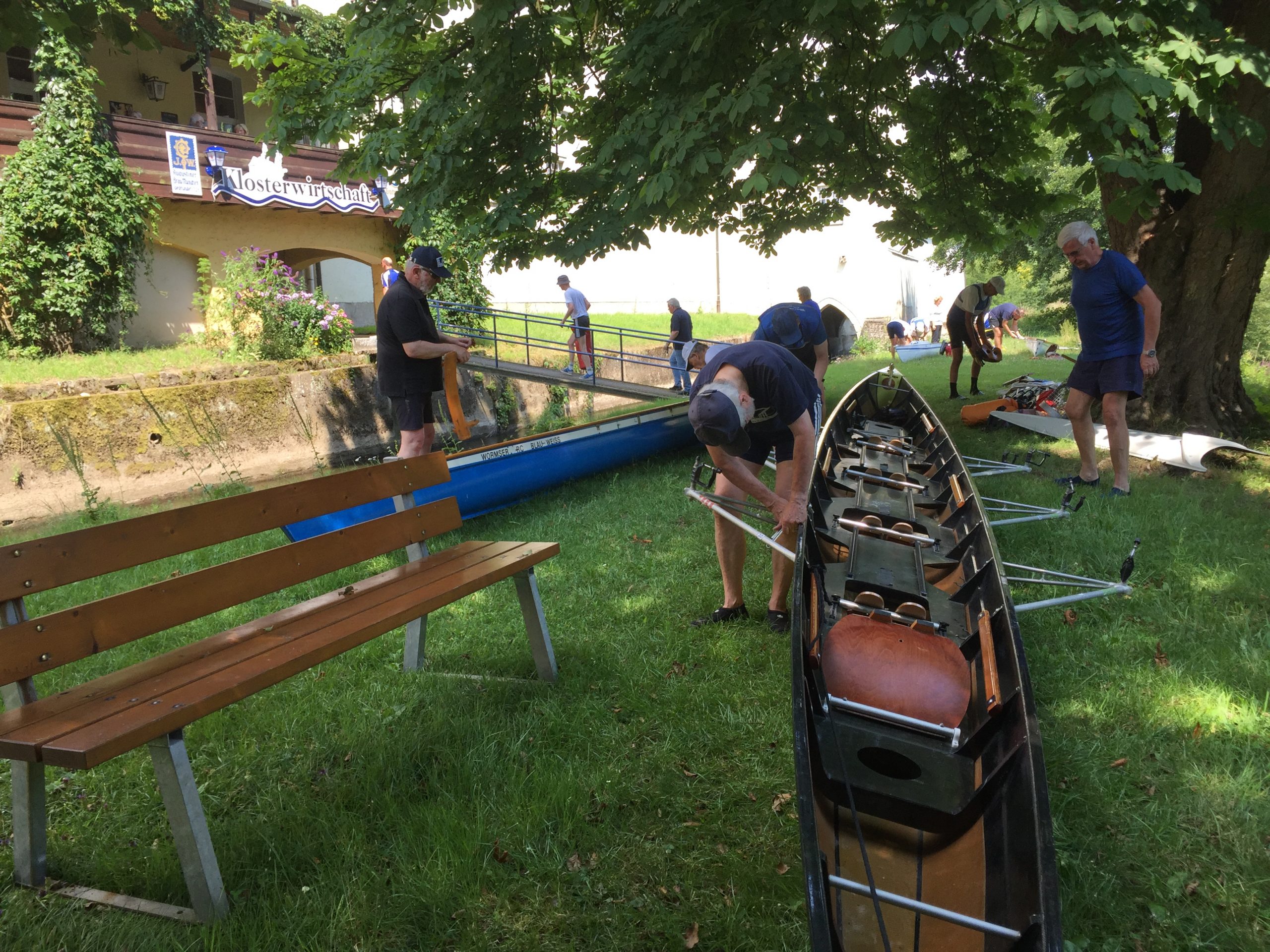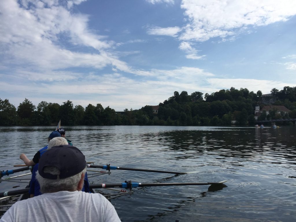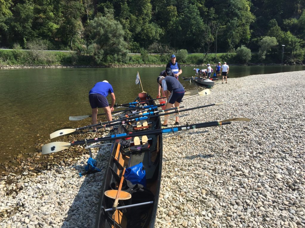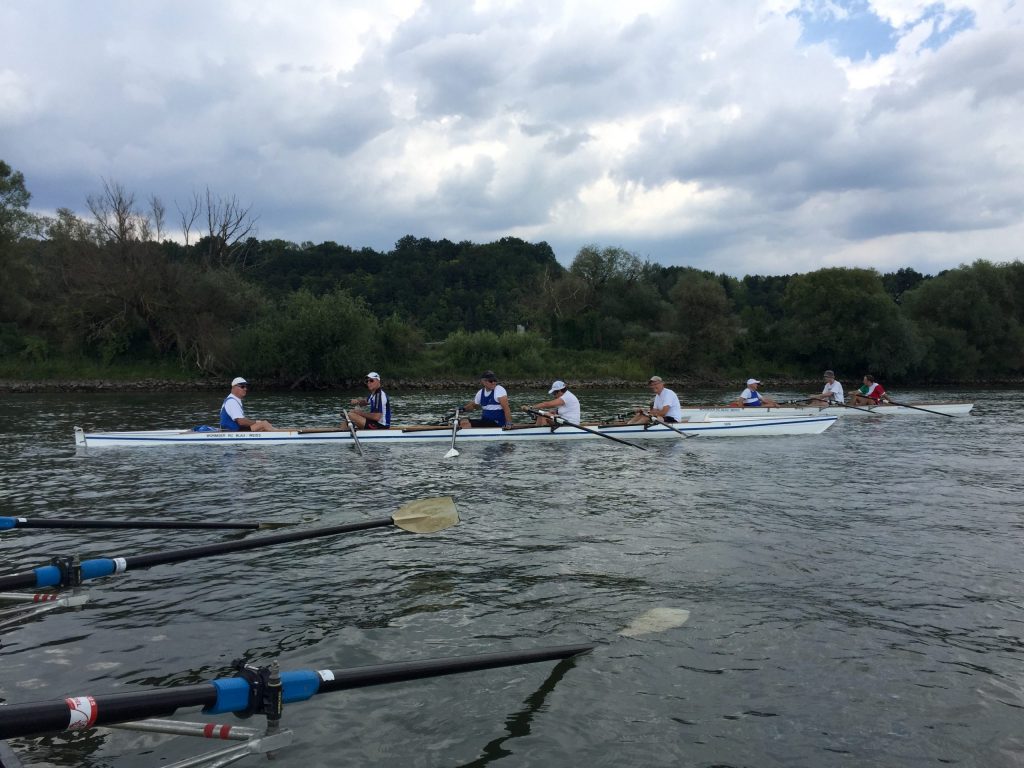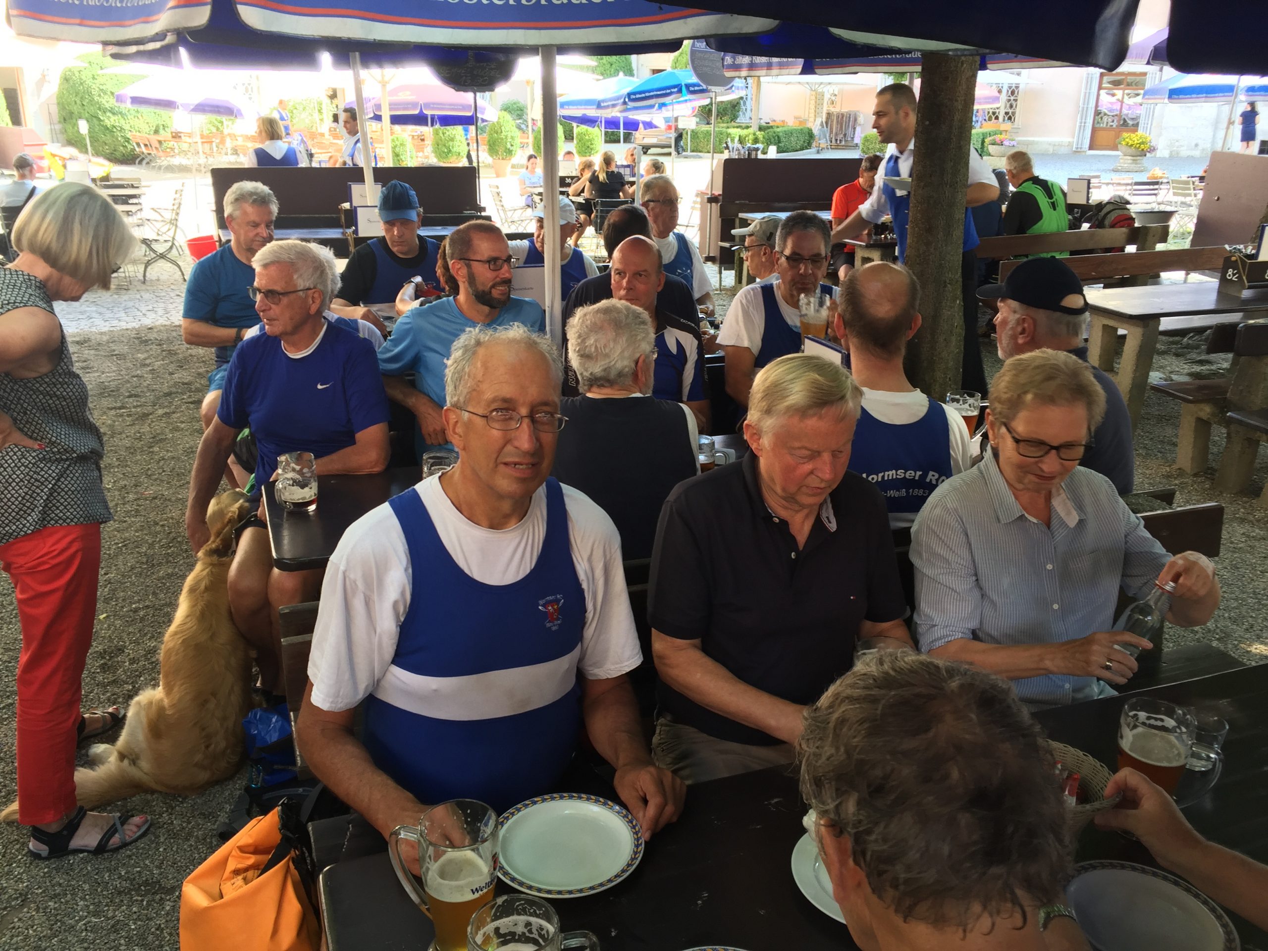 Die Wochenend-Wanderfahrt des Wormser RC Blau-Weiß 1883 ging in diesem Jahr mal wieder in die Gegend von Regensburg. Landschaftlicher Höhepunkt war der Donaudurchbruch, durch den wir gleich hinter Kloster Weltenburg ruderten. Zuvor legten wir jedoch am Kloster an, denn dort warteten im Garten der angeblich ältesten Klosterbrauerei der Welt nicht nur „Weißwurst mit Brezn“ als zweites Frühstück auf uns Ruderer.
