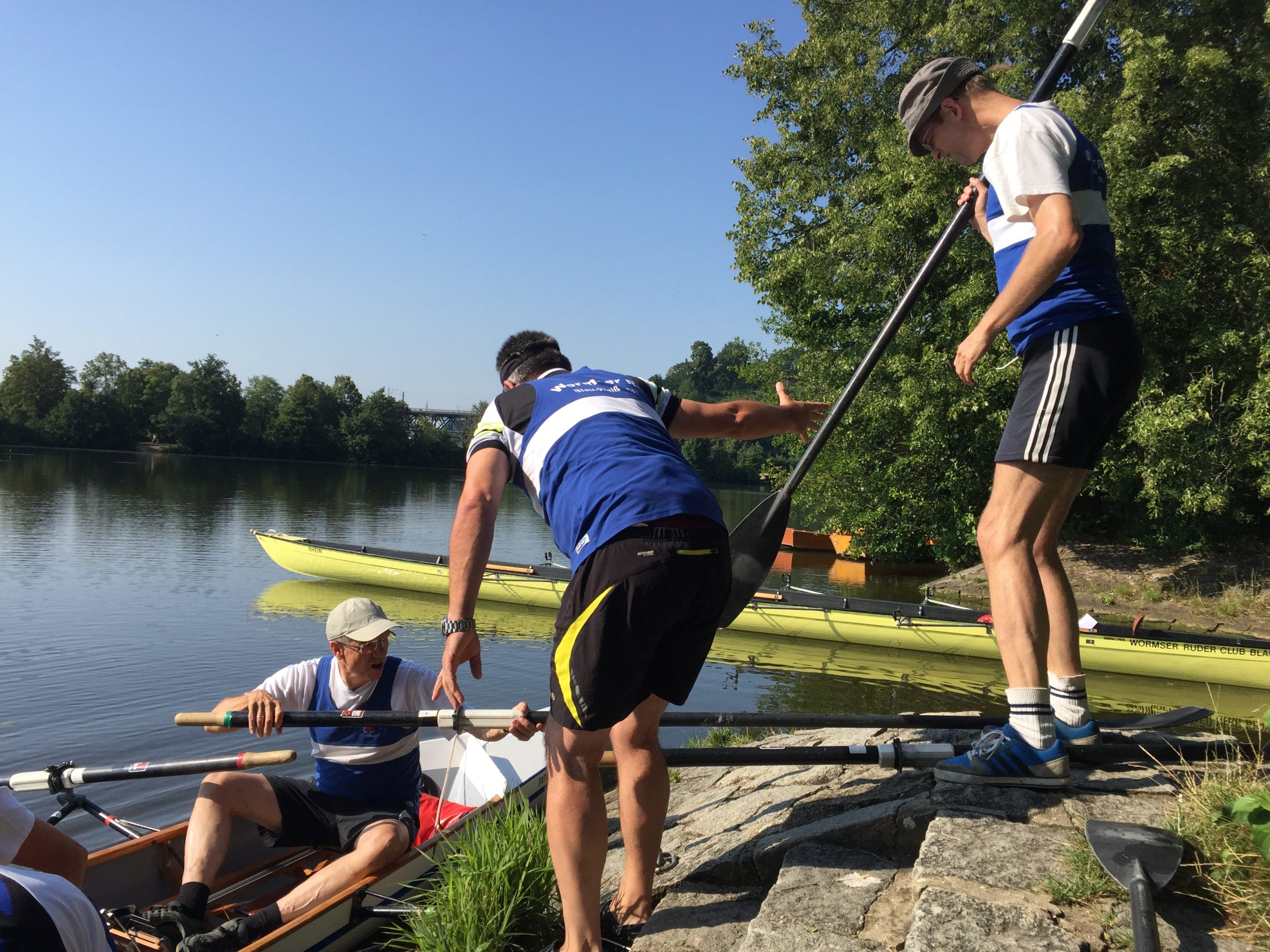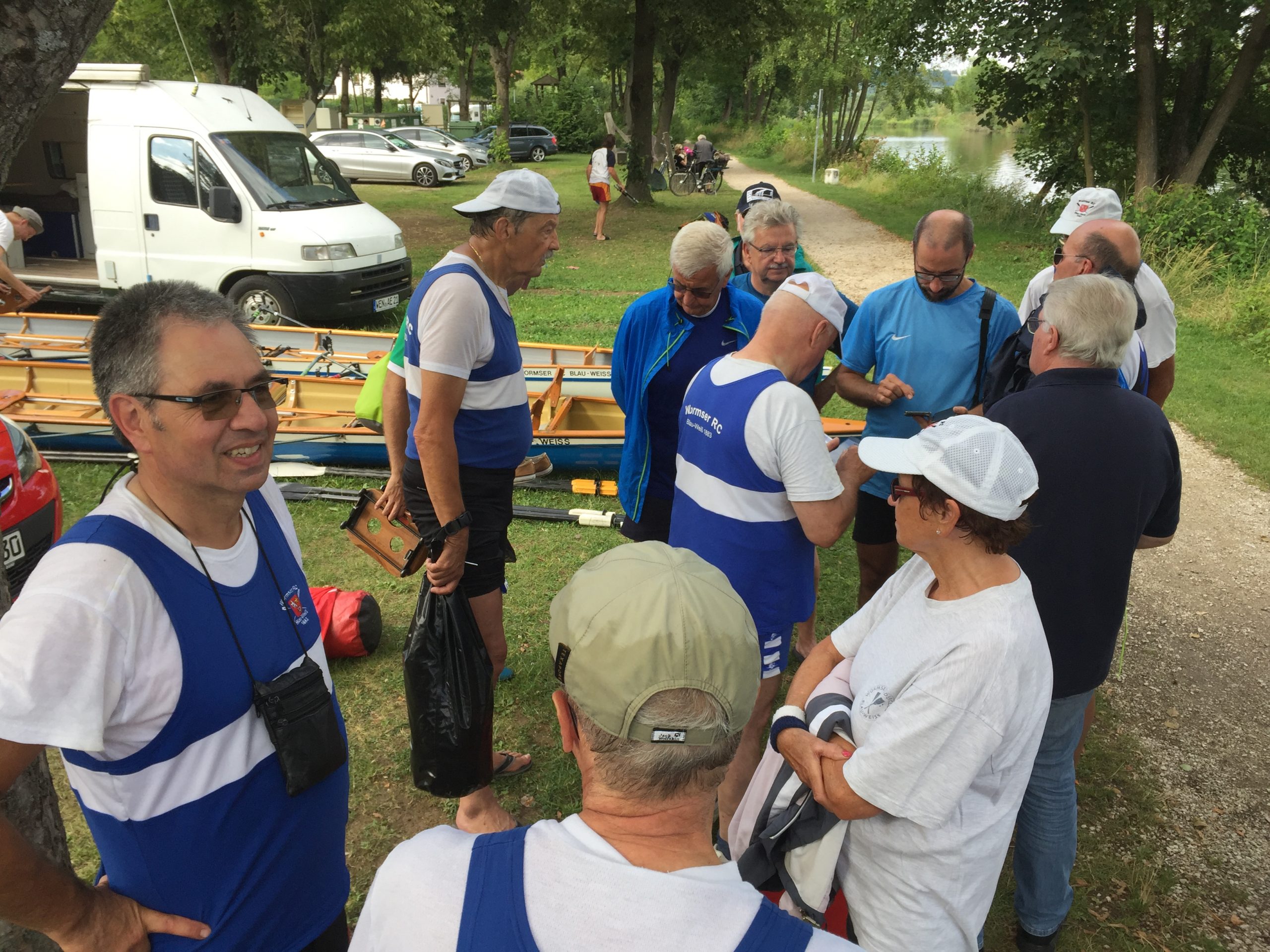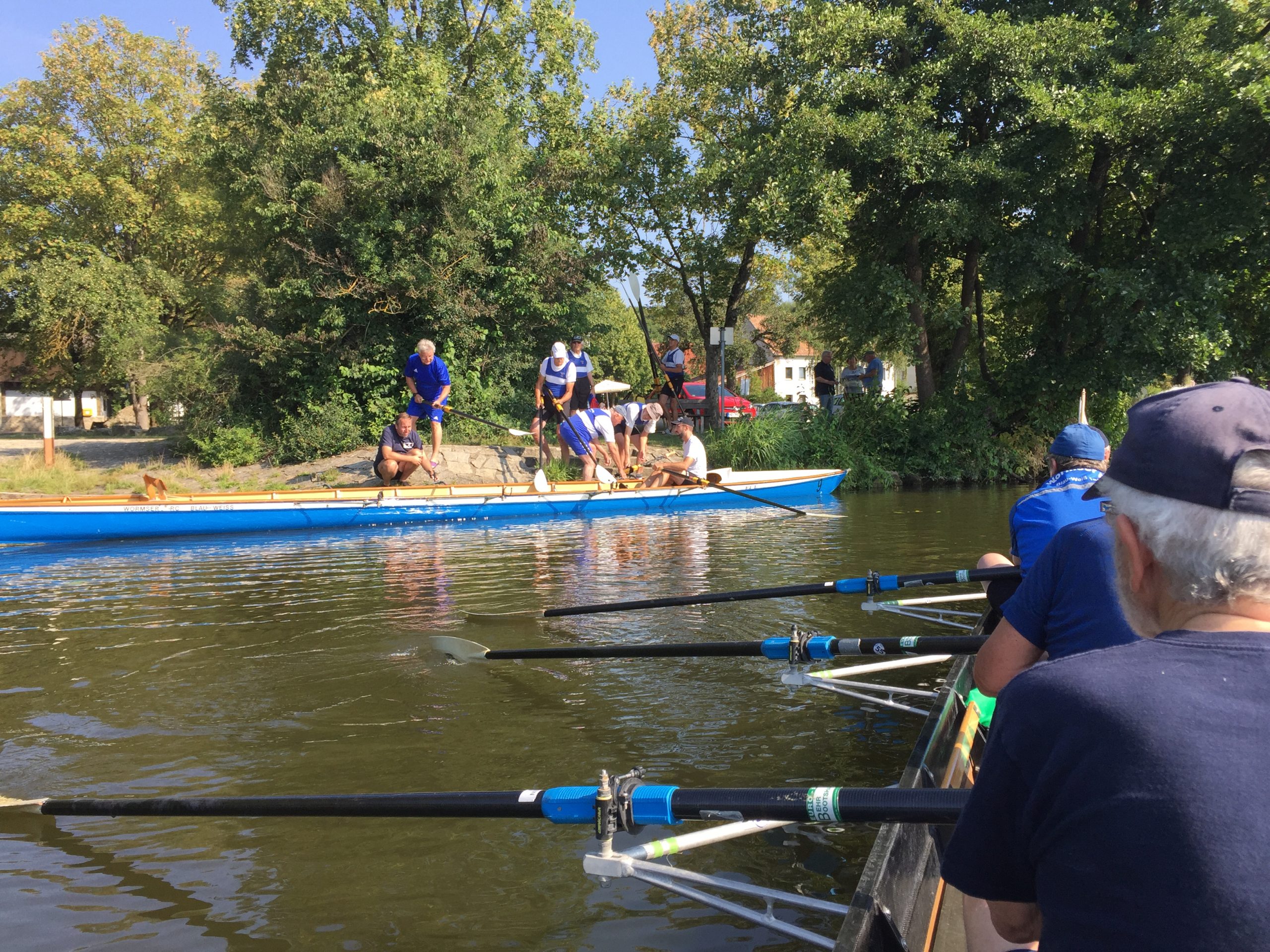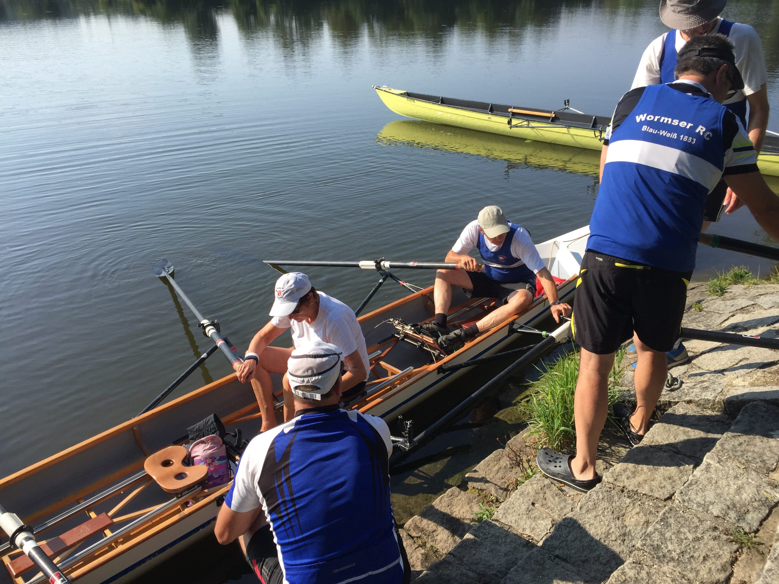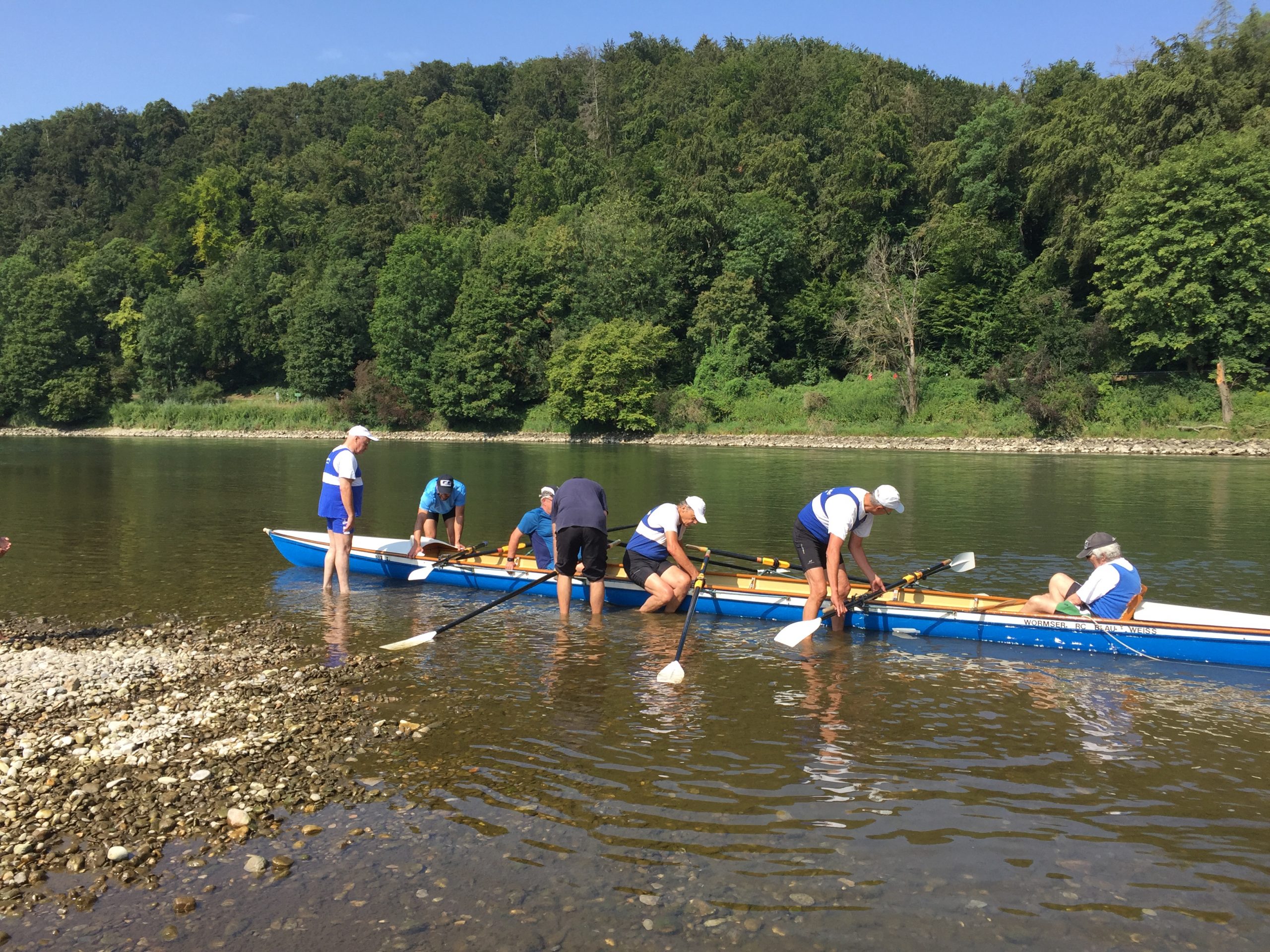 Die Wochenend-Wanderfahrt des Wormser RC Blau-Weiß 1883 ging in diesem Jahr mal wieder in die Gegend von Regensburg. Landschaftlicher Höhepunkt war der Donaudurchbruch, durch den wir gleich hinter Kloster Weltenburg ruderten. Zuvor legten wir jedoch am Kloster an, denn dort warteten im Garten der angeblich ältesten Klosterbrauerei der Welt nicht nur „Weißwurst mit Brezn“ als zweites Frühstück auf uns Ruderer.