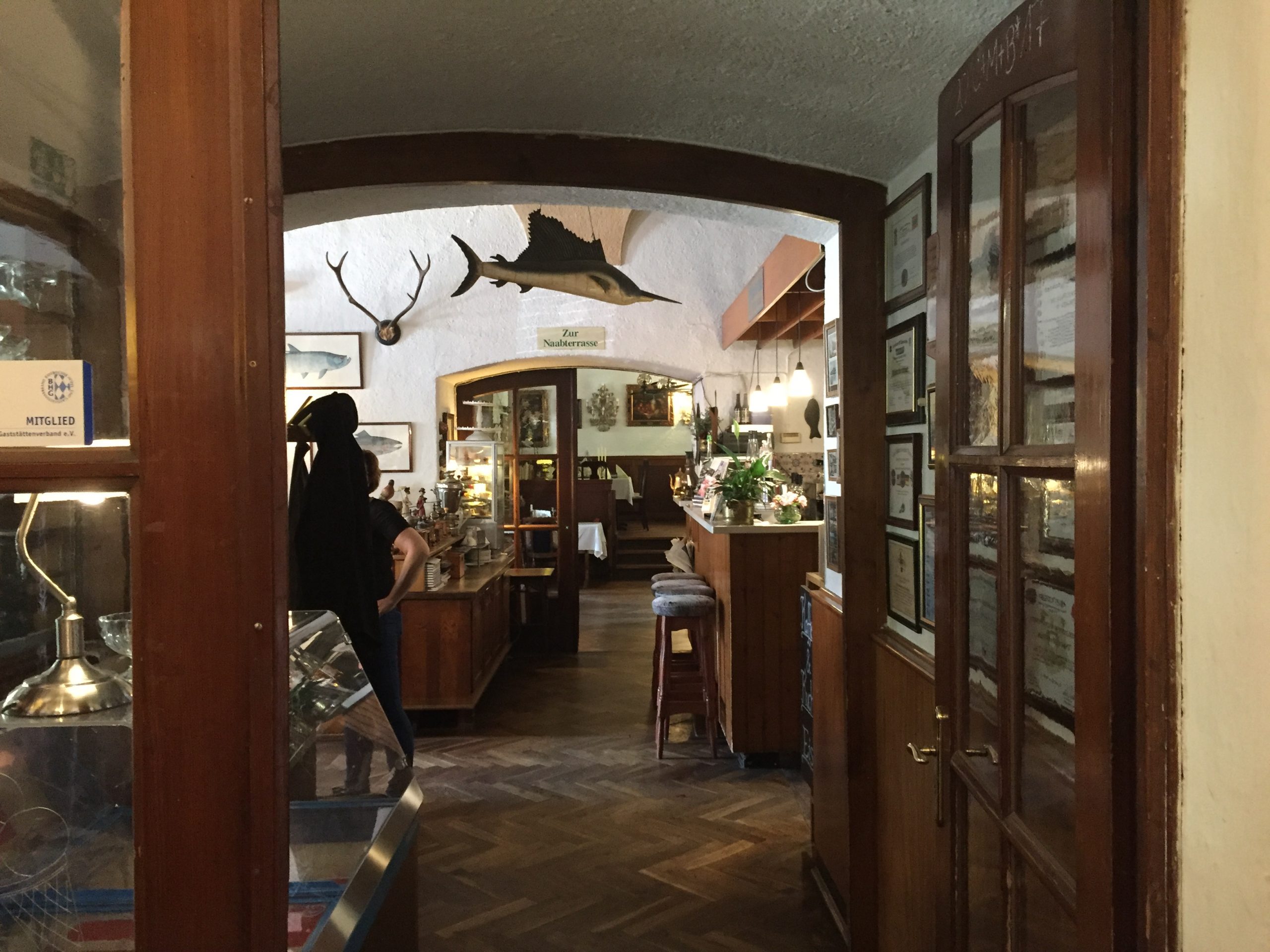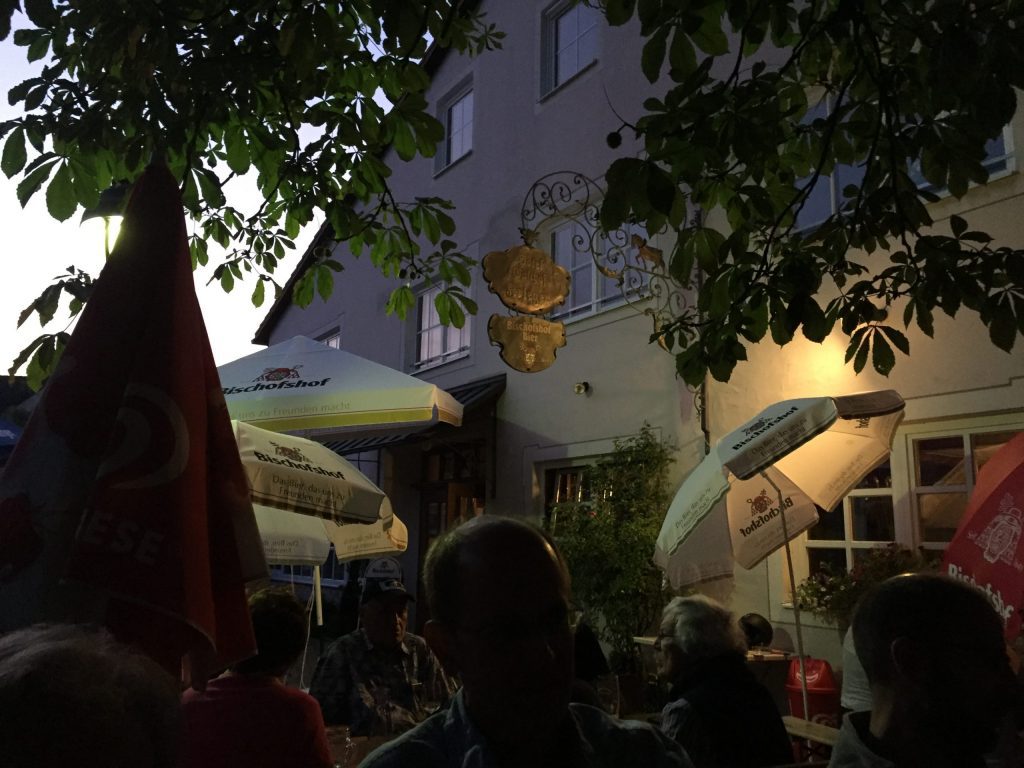 Das Hotel lag direkt an der Mündung der Naab mit Blick auf die Wallfahrtskirche Mariaort. Der Biergarten lud zum Bleiben ein, so dass es keine Frage war, dort zu essen und auch den Abend gemütlich zu verbringen.