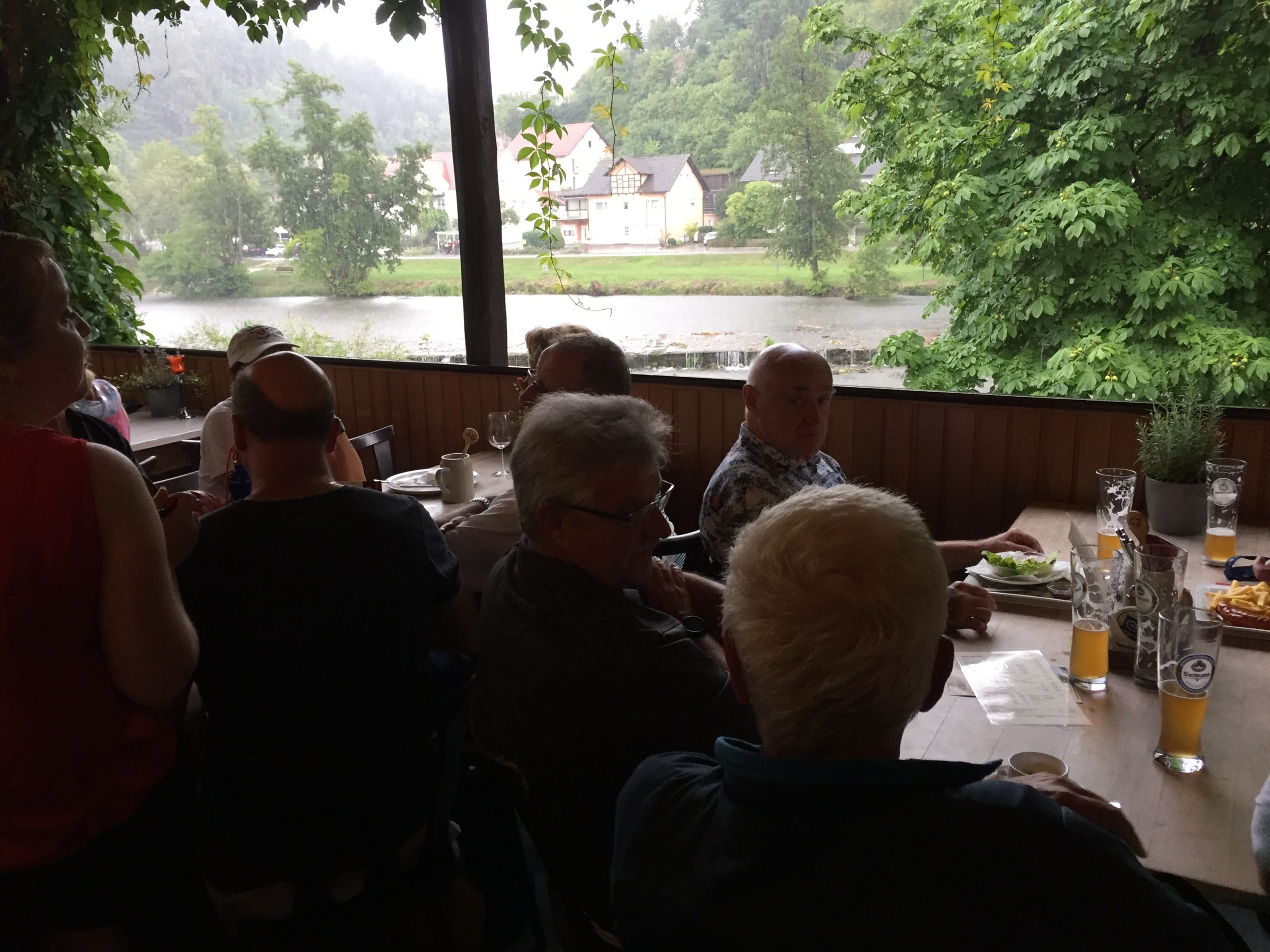 Nachdem wir uns in der Klosterwirtschaft gestärkt hatten, war es uns ein Leichtes, den mehr als kräftigen Regenguss in der Wirtschaft bis zum Verladen der Boote und zur anschließenden Heimfahrt zu überstehen.