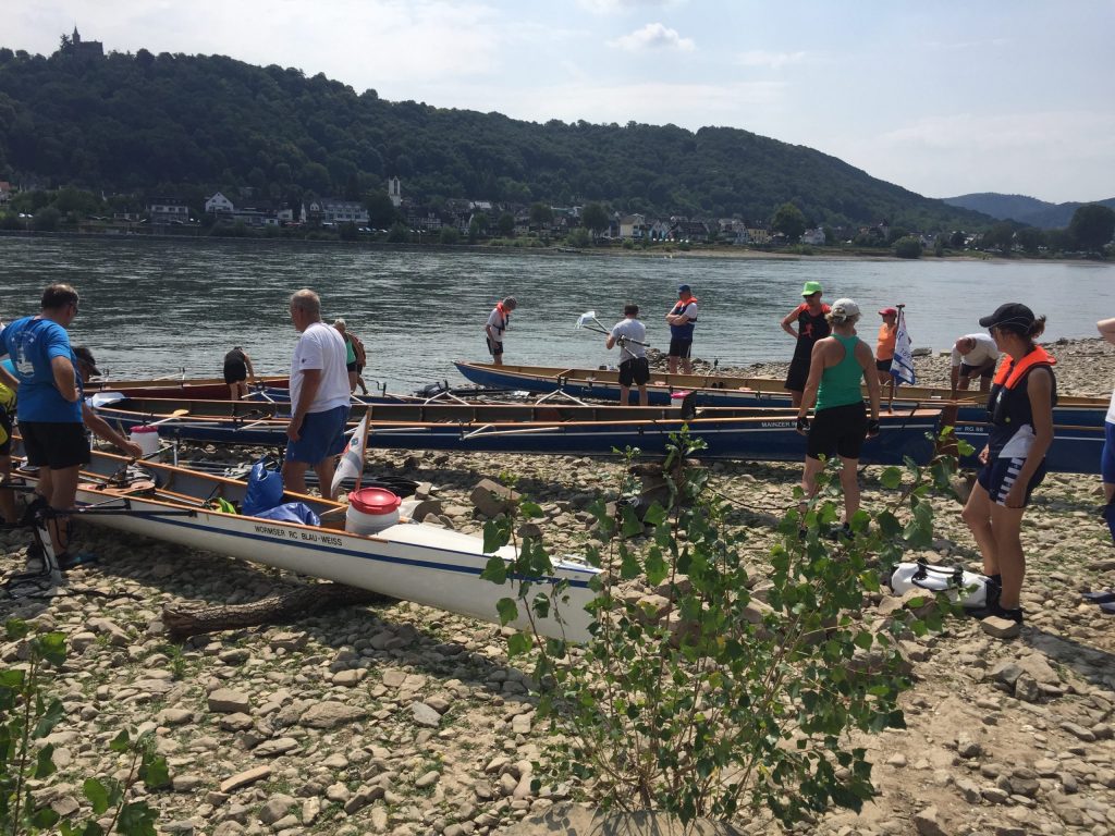 Am Sa ging es von Mainz (9:00) bis St. Goar und am folgenden Tag von St. Goar bis Rhens. Hierzu hatte Doris W. von der MRG wieder die altbewährten Vorbereitung – inkl. prall gefüllter Proviantboxen für jedes Boot – getroffen.