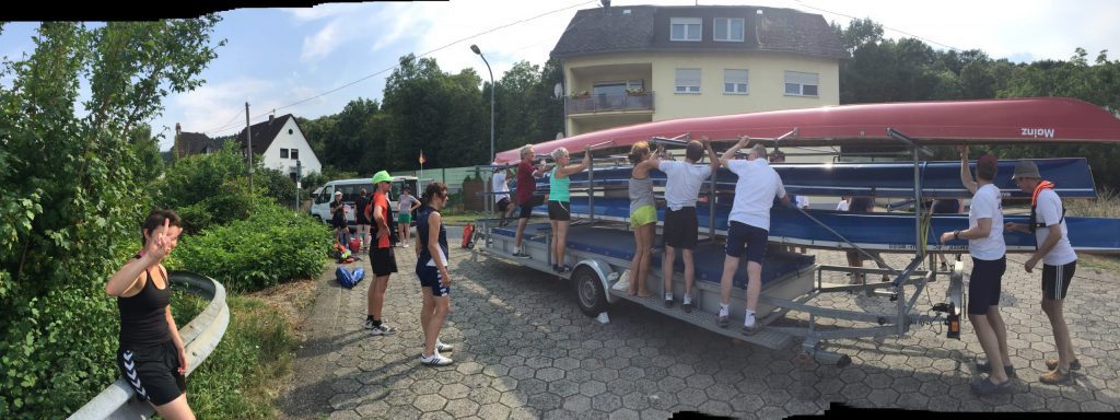 Als wir nach 60 km müde bei unseren Freunden der Mainzer Ruder-Gesellschaft aufschlugen, stand da schon unser Clubbus, der uns nach einem kurzen „Schnak“ mit den Mainzern zur Übernachtung in unsere heimischen Betten brachte.