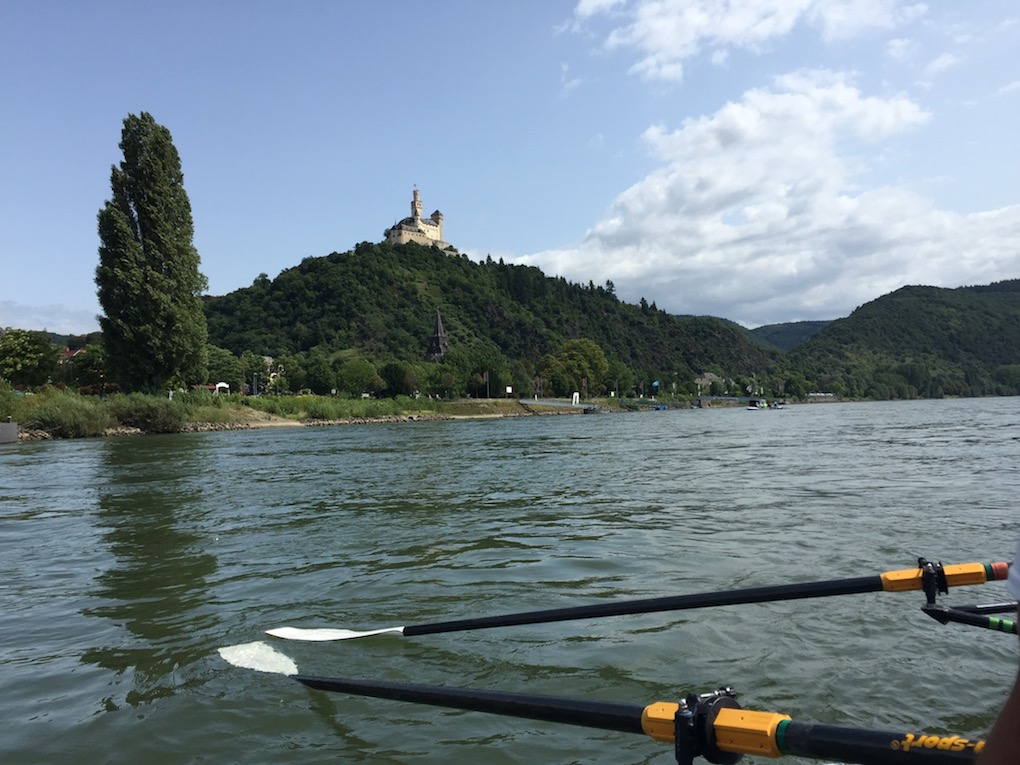 Mit einem wohligen Gefühl stiegen wir dann wieder in die Boote. Vorbei an der vielfotografierten Marksburg bei Braubach endete die Tour in Rhens. Nach dem Aufladen ging es mit dem Reisebus, Minna und dem mit 5 Gigvierern beladenen Wormser Anhänger zurück nach Mainz. Doris W. in der Fahrtenbeschreibung: „Von dort aus fahren alle in Eigenregie nach Hause. So ist der Plan.“