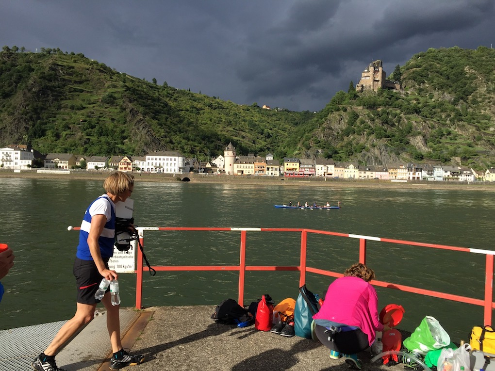 Wie auch in den Vorjahren starteten zwei Boote aus Worms bereits einen Tag früher und ruderten in der Voretappe bis zur Mainzer RG. Mit an Bord waren auf dieser Vortour Doris und Michael. Nach seiner frischen Schulter OP sollte Michael nicht zu viel riskieren, wollte es sich aber nicht nehmen lassen, uns wenigsten einen Tag als Steuermann zu begleiten. Noch erwähnenswert war, dass uns 30 Min. vor Mainz ein wirklich heftiger Platzregen so durchnässte, dass wir froh waren, die Nacht in Worms zu verbringen, um Schuhe und Kleidung zu trocknen.