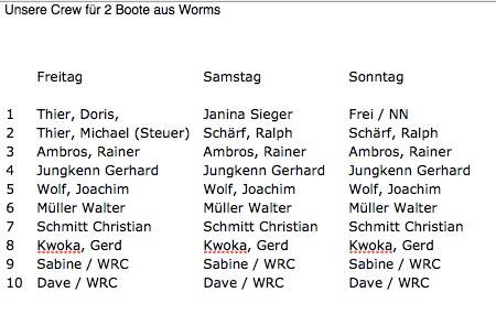 Dank Gerhard J. und Rainer, die unseren Bus und Hänger schon vor der Tour nach Mainz geschafft hatten, hieß es in Mainz für die Wormser nur noch „umsteigen“ und ab nach Hause, wo die Boote abgeladen, gereinigt und wieder aufgeriggert wurden.