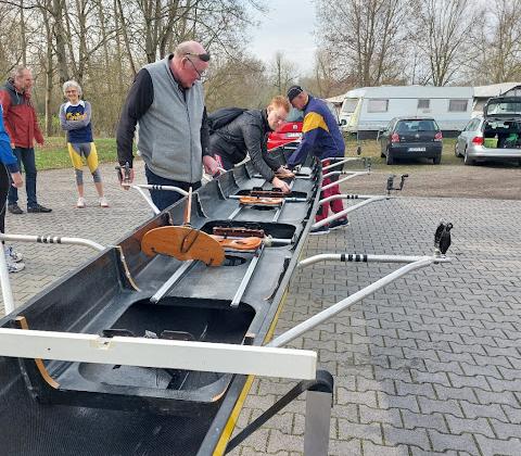 Am Sonntag, den 30. März 2025, war es wieder so weit: Das traditionelle Anrudern stand an – in diesem Jahr mit zwei Booten auf dem Rhein und erstmals unserem neuen, kompakten Bootsanhänger im Einsatz.