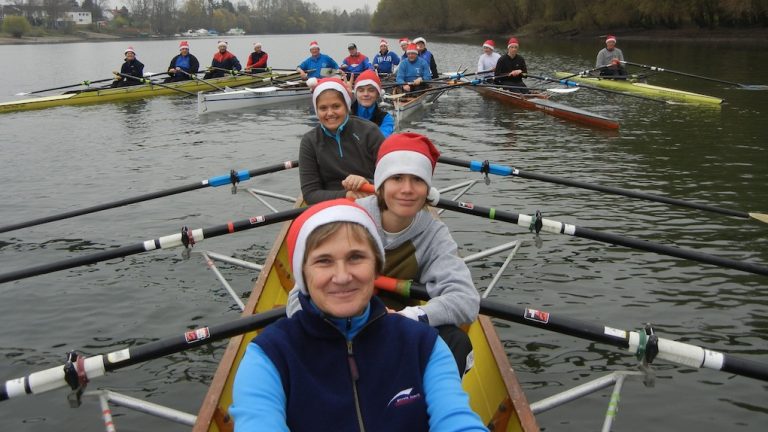 Nikolausrudern – 18 rote Zipfelmützen auf dem Wasser