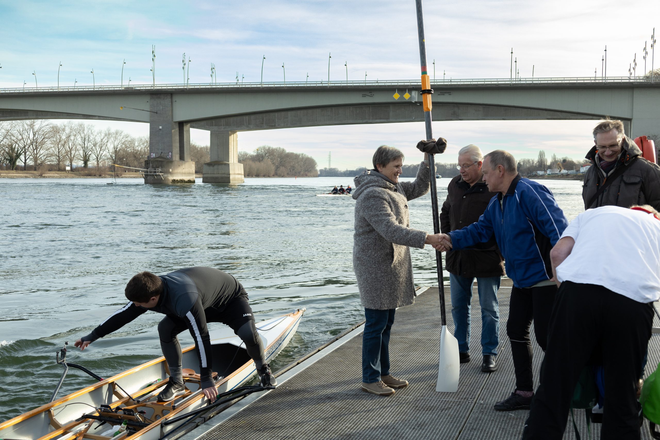 Im Anschluss fand ein Neujahrsumtrunk mit Kuchen in der Bootshalle des Ruderclubs an der Rheinpromenade statt.