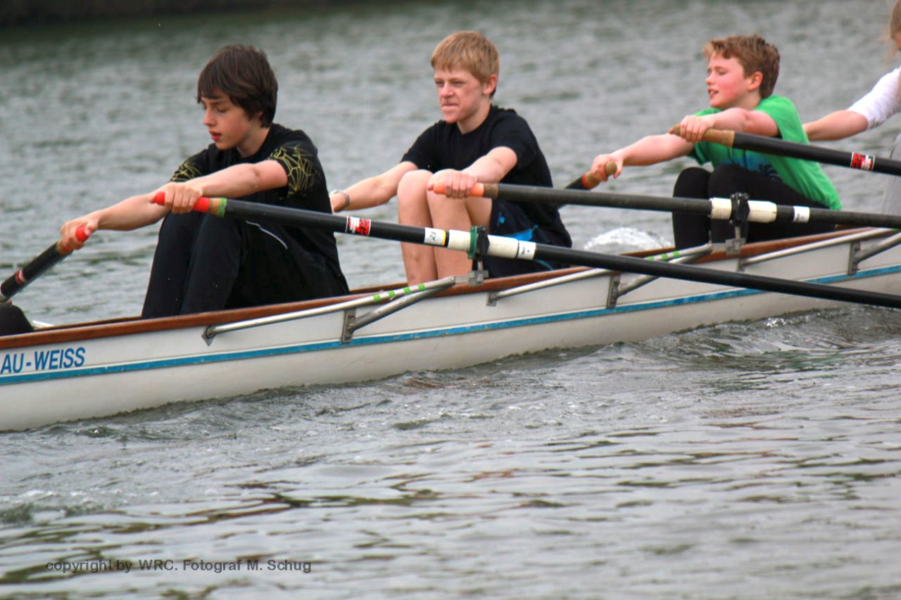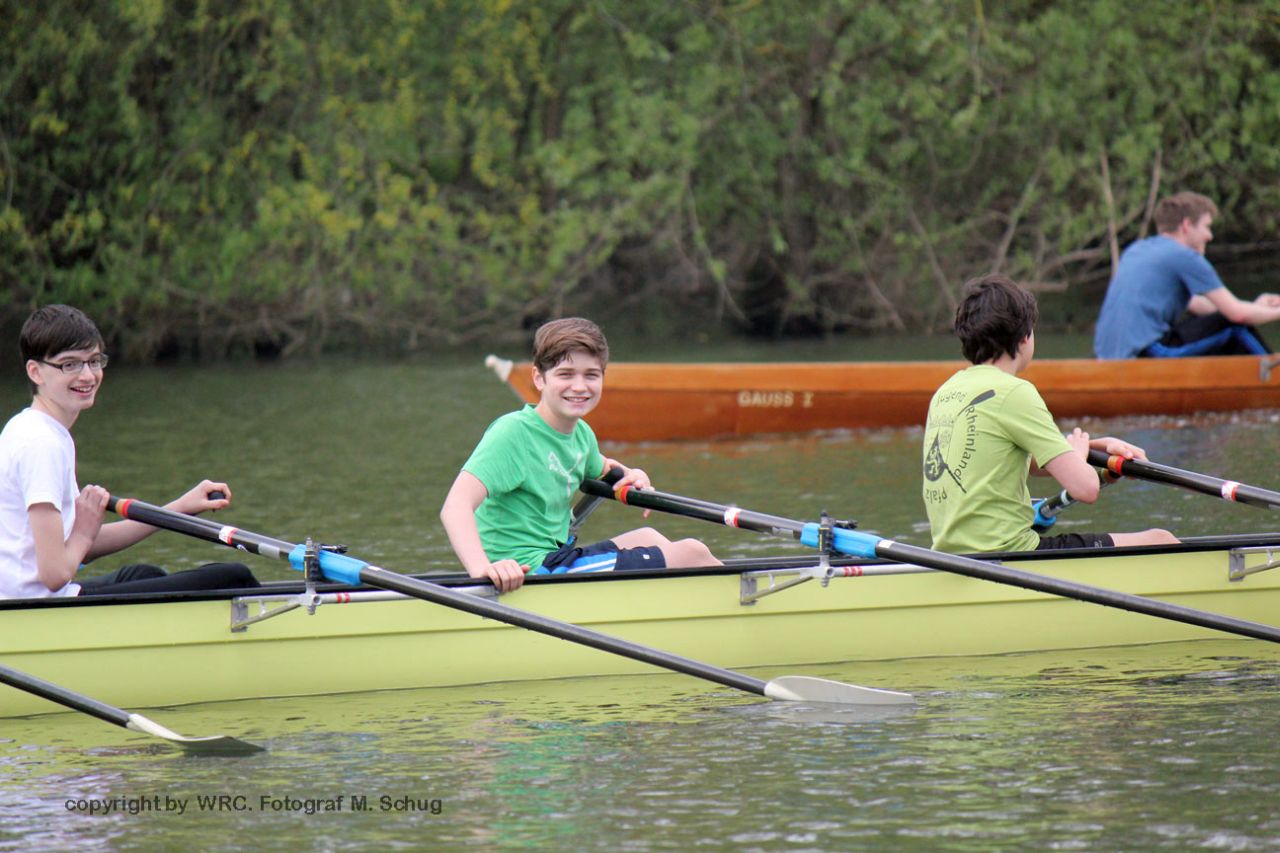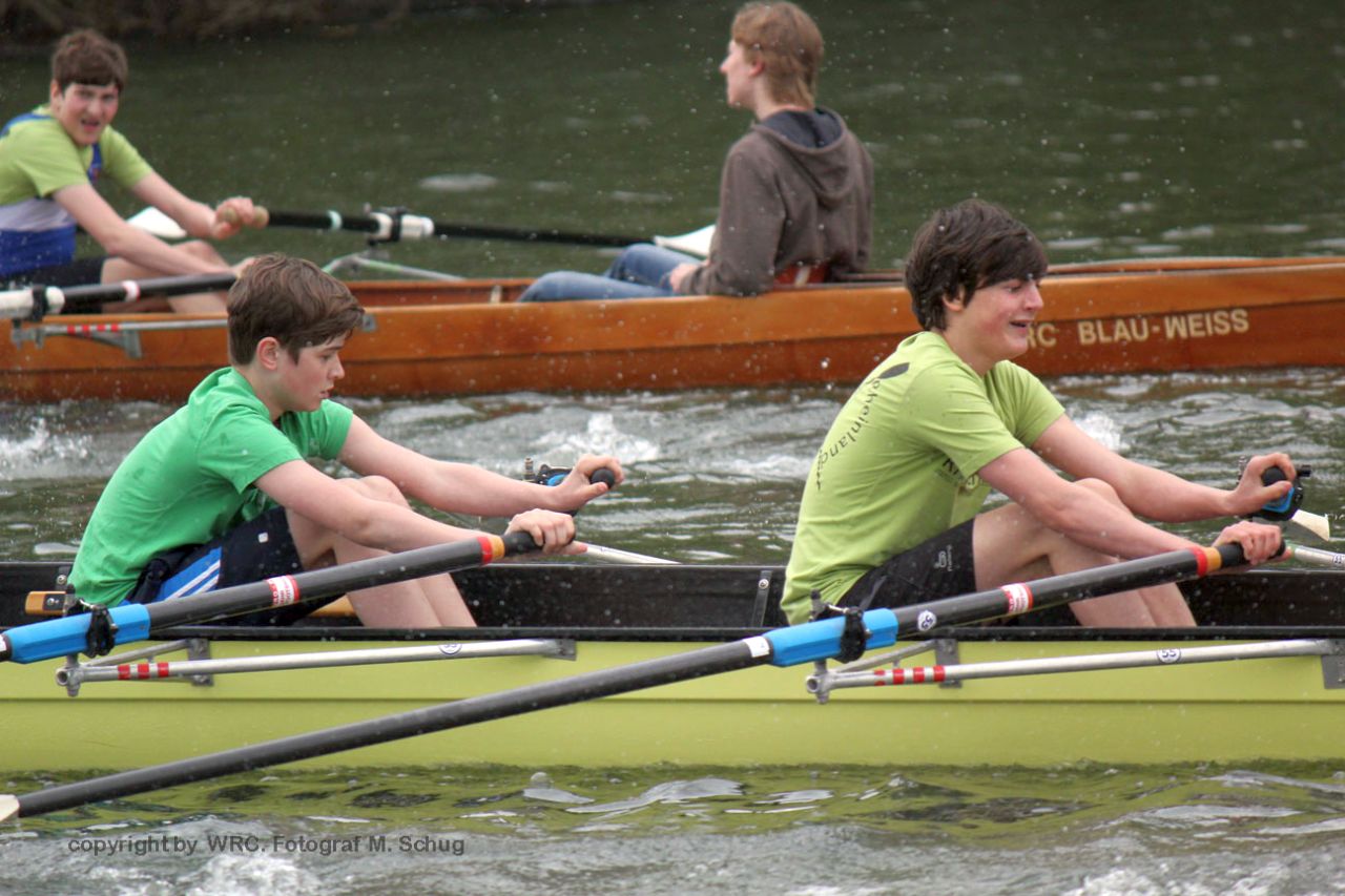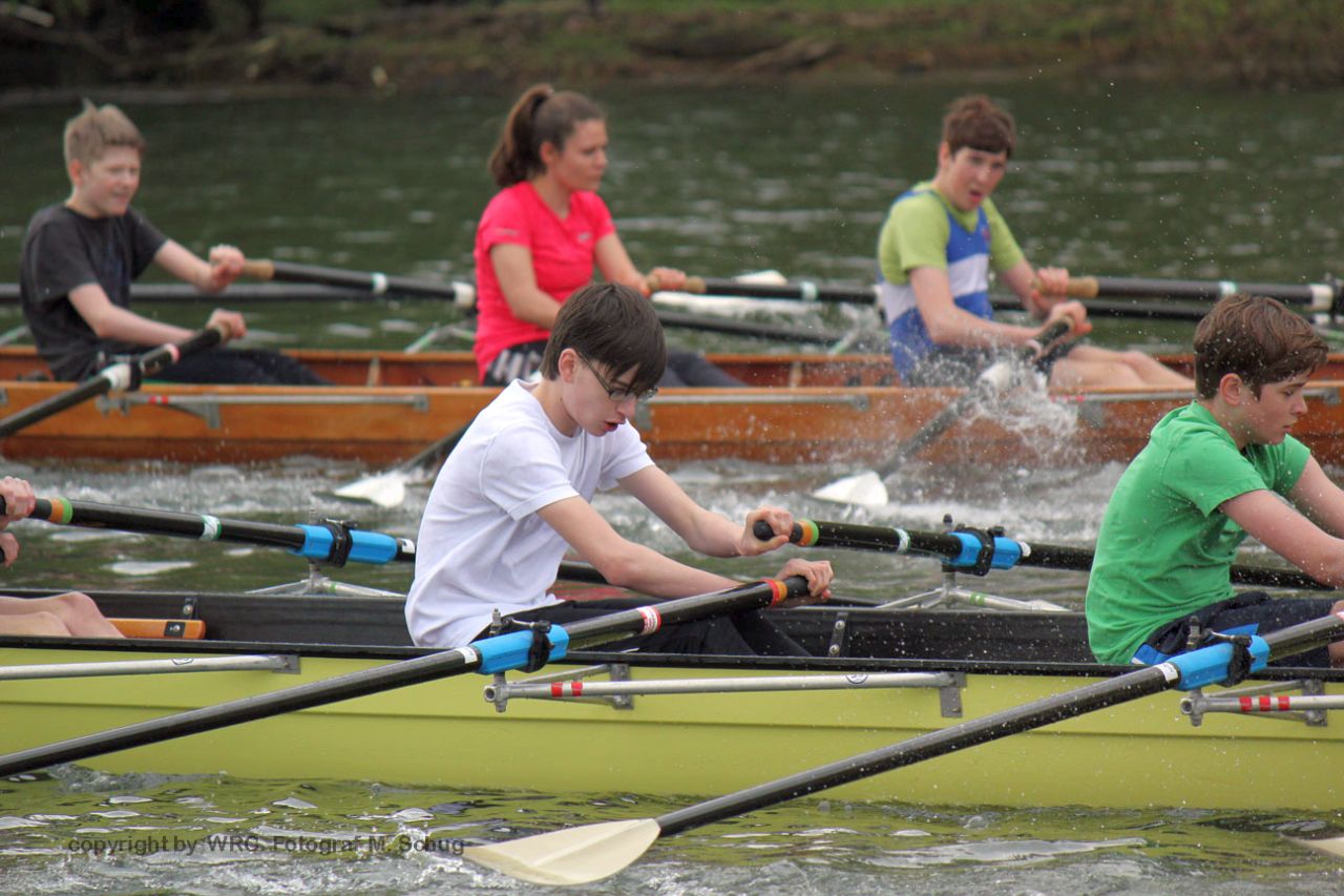 In einem spannenden Rennen wurde mit drei Doppelvierern eine Clubregatta der Jugend ausgefahren. Auf der Strecke von 400 m sahen die Zuschauer am Ufer ein spannendes Rennen in dem sich zwei Boote zu Beginn ein Kopf-an-Kopf-Rennen lieferten.