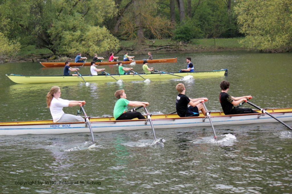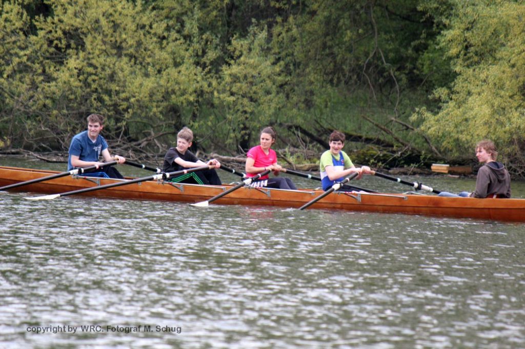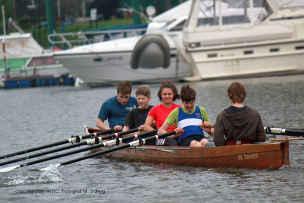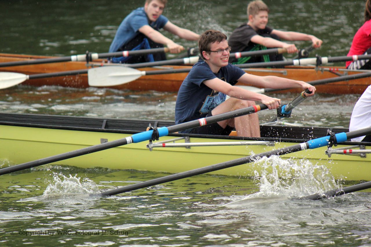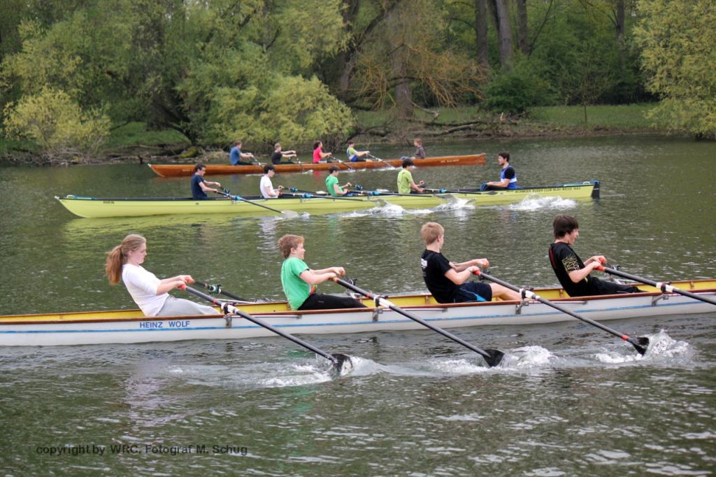 In einem spannenden Rennen wurde mit drei Doppelvierern eine Clubregatta der Jugend ausgefahren. Auf der Strecke von 400 m sahen die Zuschauer am Ufer ein spannendes Rennen in dem sich zwei Boote zu Beginn ein Kopf-an-Kopf-Rennen lieferten.