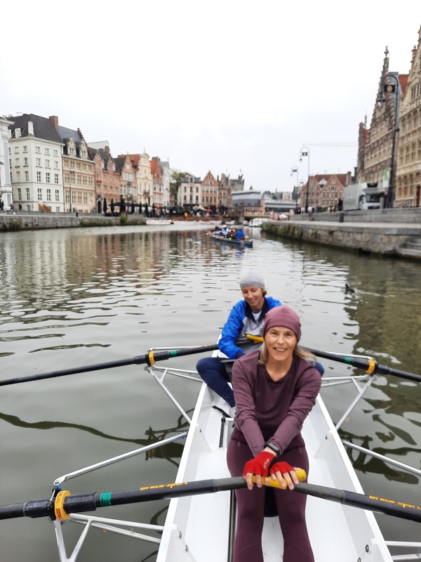 Der Freitag stand ganz im Zeichen des Ruderns. Zwei Boote – ein gesteuerter Vierer und ein gesteuerter Zweier – machten sich auf den Weg durch die Wasserstraßen Gents. Zuerst ging es über ein Stück der Regattastrecke, dann hinein in die idyllischen Kanäle, gesäumt von tiefhängenden Weiden und grünen Uferabschnitten.