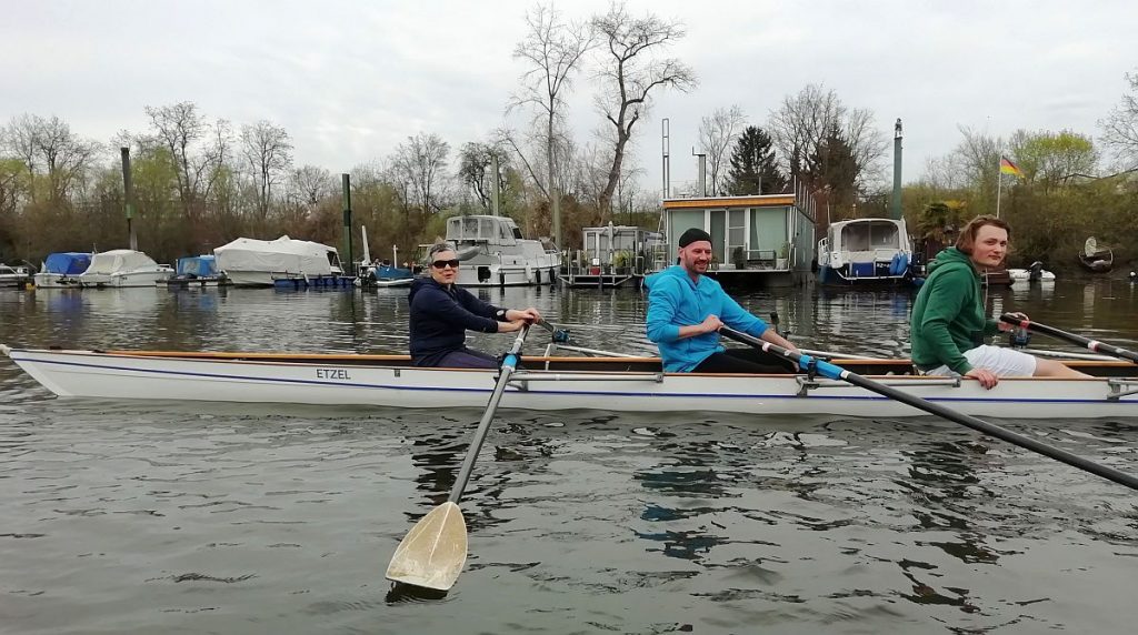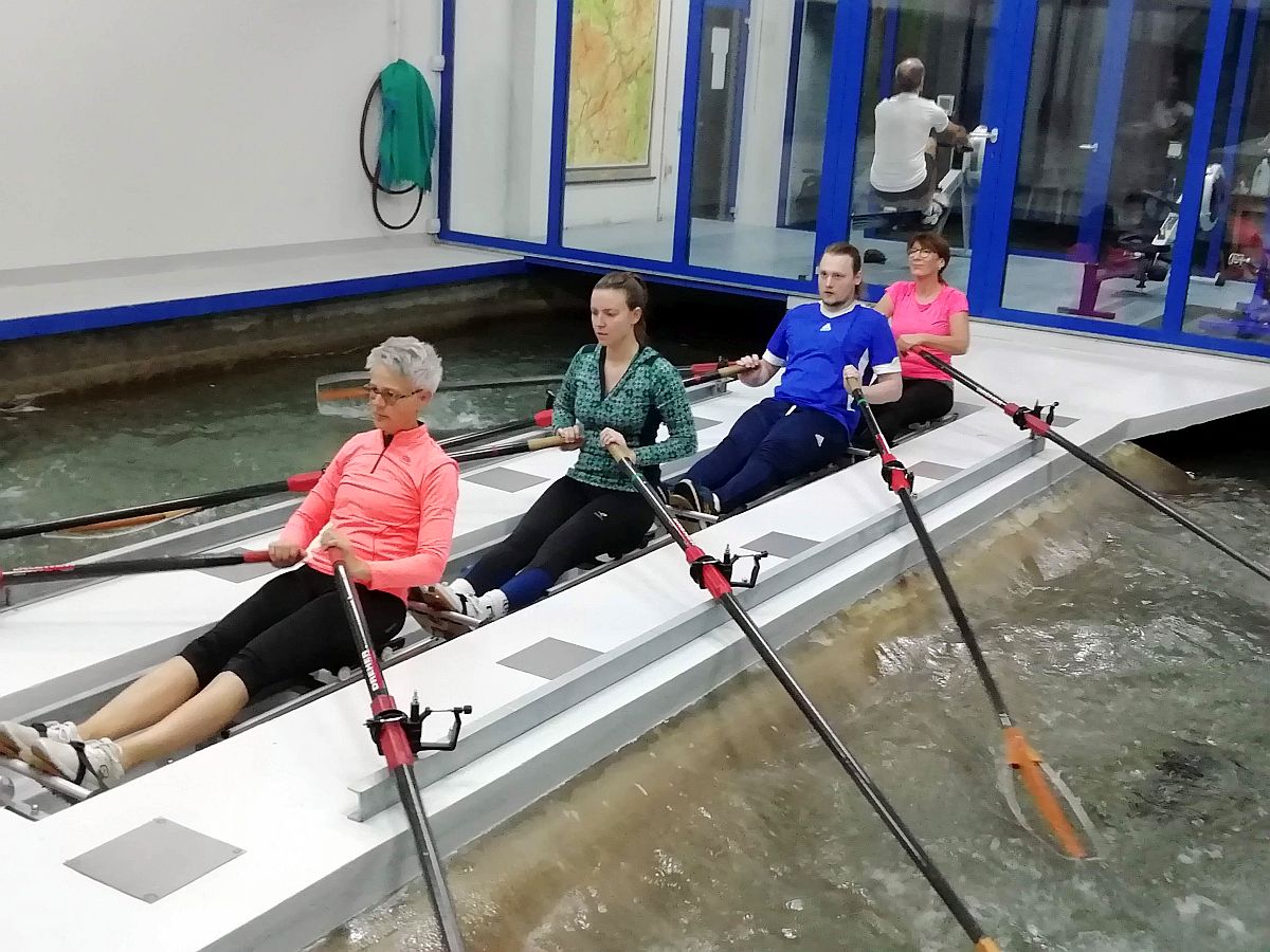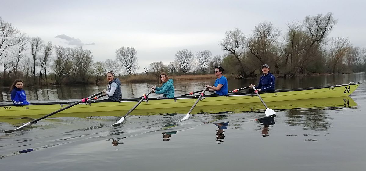 Unser Ruderbecken war durchgehend frequentiert, so dass außer den den normalen Trainingszeiten noch zusätzliche Ruderbeckenzeiten angeboten wurden. Ebenfalls wurde der Kraftraum, das „arbeiten“ mit dem eigenen Körpergewicht, dehnen + stretchen sowie natürlich in hohem Maße das Ergometer fahren mit Begeisterung angenommen. Natürlich warteten jetzt alle auf etwas wärmeres Wetter, um endlich das Erlernte in die Praxis umzusetzen. Der Wettergott hatte ein Einsehen und wir konnten alle im März endlich in Lampertheim in die Boote einsteigen. Der Unterschied zwischen Theorie und Praxis war doch sehr deutlich, minderte aber auf keinen Fall die Begeisterung.