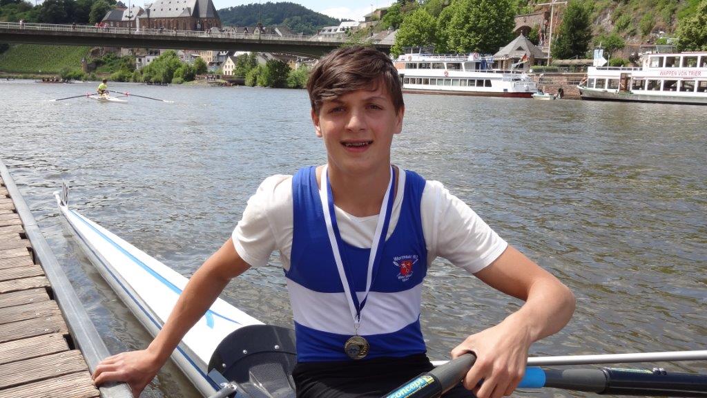 Beim Landesentscheid der Jungen und Mädchen in Saarburg konnte der Jungen-Doppelvierer mit Steuermann (Jahrgang 2000) vom Wormser Ruderclub Blau-Weiß überzeugen und dominierte über die 3000-Meter-Distanz vor dem Mainzer RV mit rund einer Minute Vorsprung. Auf Grund dieser Leistung wurde der Vierer in der Besetzung Jonas Burkhardt, Markus Feils, Florian Marx, Daniel Jung und Steuermann David Brandt für die Deutschen Schülermeisterschaften in Rüdersdorf Anfang Juli nominiert.