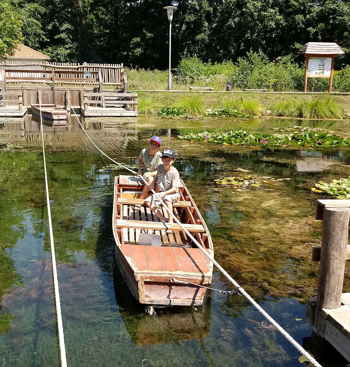 Am Montag ging es zum Naturlehrpfad Fenyes Fürdö, wo die Quellen aus dem Karstgestein wieder sprudeln und eine tolle Flora und Fauna gedeihen lassen, darunter Frösche, Schildkrönen, Schlangen und einen Biber. Während des Kohlebergbaus in Tatabanya wurde das Grundwasser abgepumpt und in den See geleitet. Gut für den See, schlecht für die Natur. Aber damit war um die Jahrtausendwende Schluss und nun ist das Grundwasser wieder gestiegen und die Quellen sind wieder aktiv. Der Besuch im Freibad nebenan war sehr willkommen.
