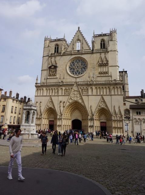 Typisch für Lyons Altstadt sind Häuser mit schmaler Front an der Straße und Durchgängen zu den Hinterhöfen mit weiteren Häusern sehr eng bebaut. Leider konnte die Kathedrale wegen eines Gottesdiensts nicht betreten werden. Auf dem Platz davor wurden passend zum Maitag Maiglöckchen feilgeboten. Eine Teilnehmerin, die deswegen ihre Geldbörse aus dem Rucksack geholt hatte, vermisste diese kurze Zeit später – und der Reißverschluss des Rucksacks stand offen. Großes Pech wegen der hohen gestohlenen Summe. Da konnten auch die Geschichten von Kaspar nicht hinwegtrösten.
