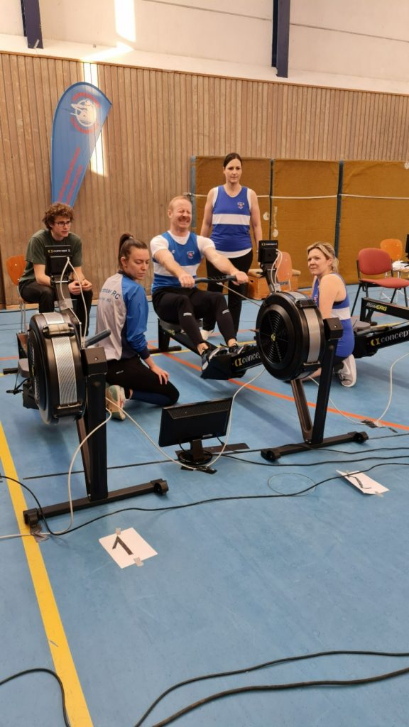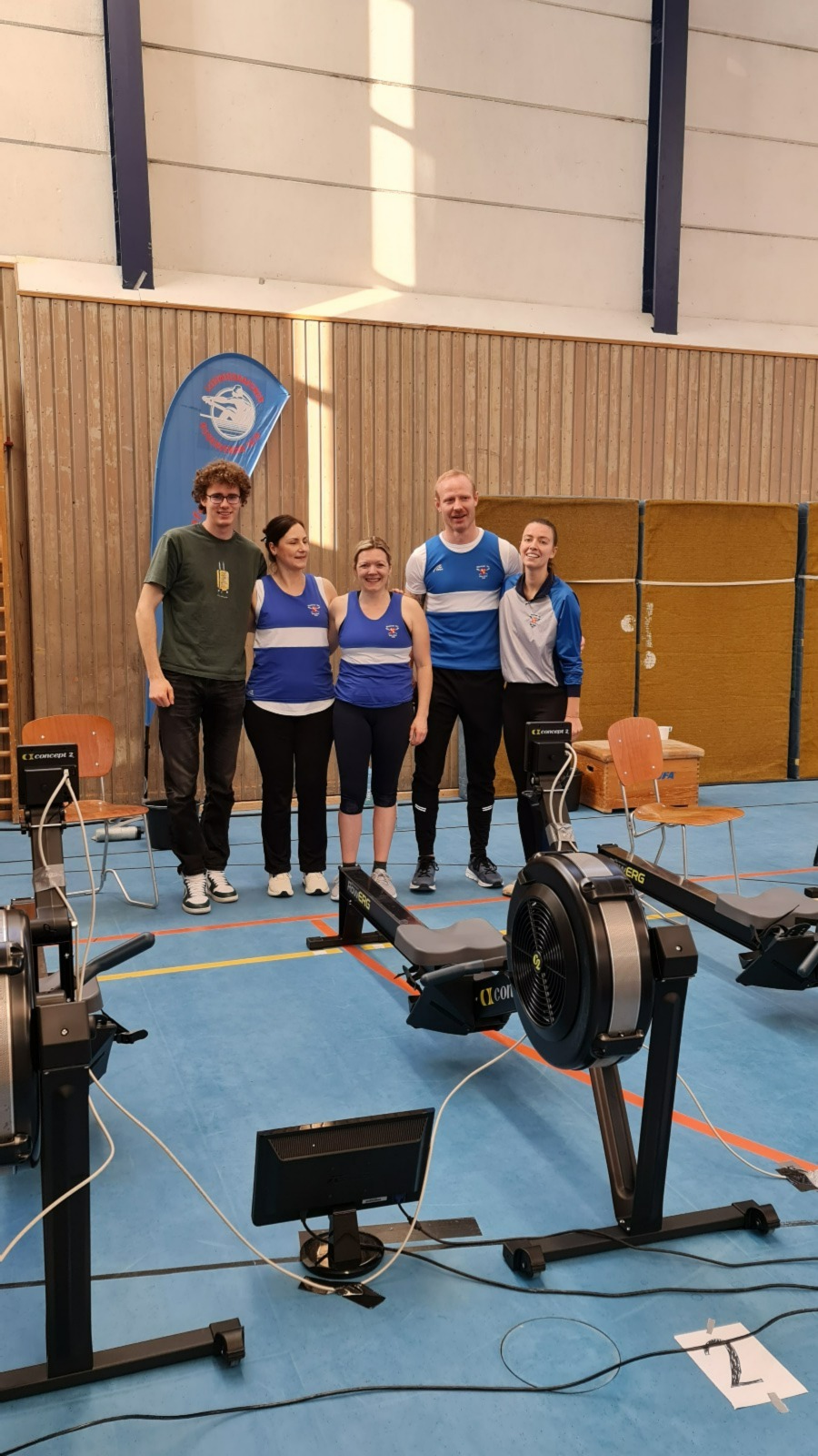 Leider wurde dadurch auch die große Mannschaft für den ErgoCup sehr dezimiert und es blieben Jens für die 1000 m und Tanja, Dani, Leonie und als Ersatzmann Jens für den Vereins-Vierer übrig. Die Wechsel nach jeweils 500 m mussten sehr intensiv geübt werden. Fazit: Jens fuhr persönliche Bestzeit und der Vereins-Vierer wurde Zweiter. Familienunterstützung war gut vertreten und es wurde lautstark angefeuert. Alle 4 hatten eine klare Aussage: das machen wir nächsten Jahr wieder!