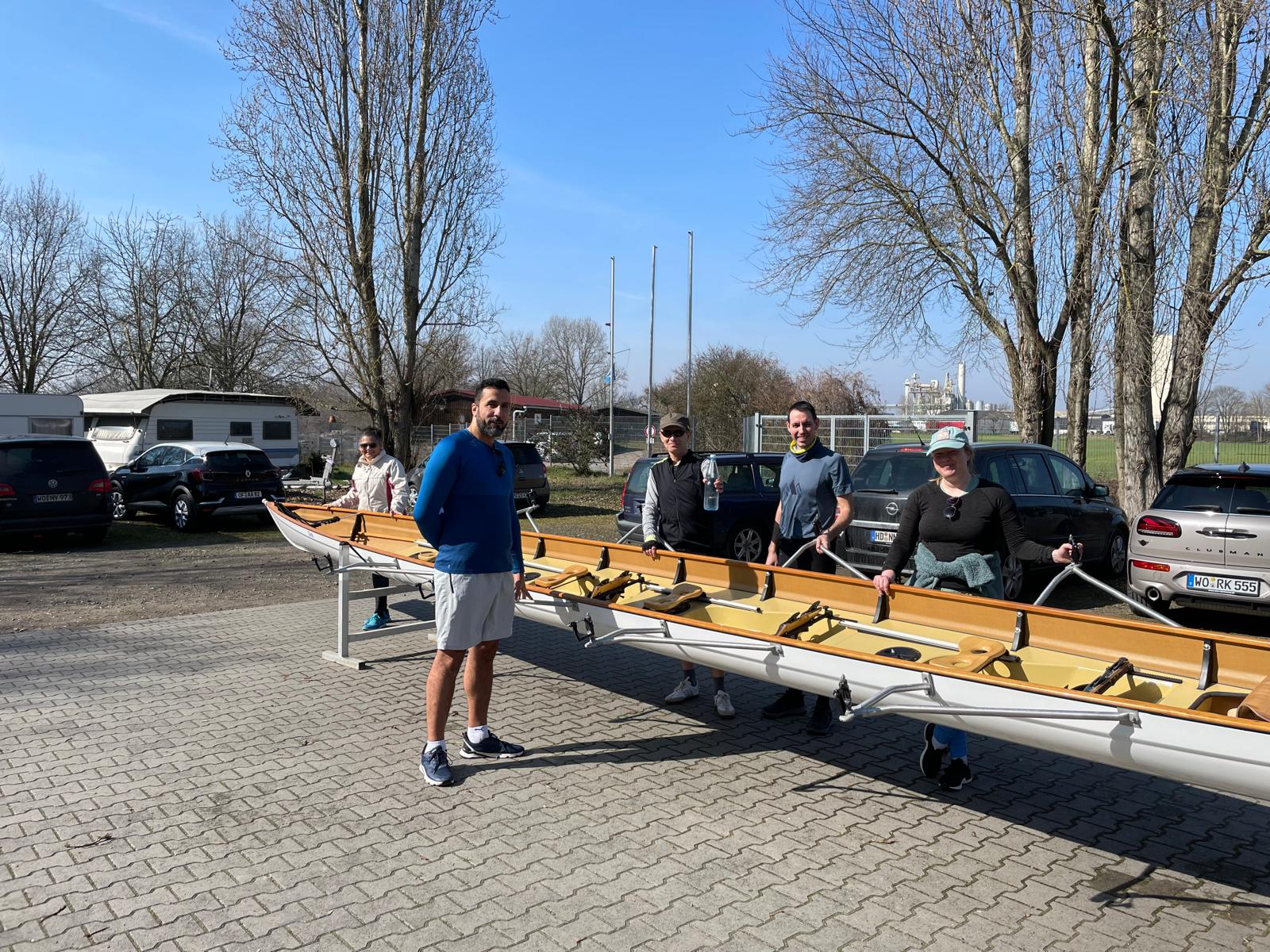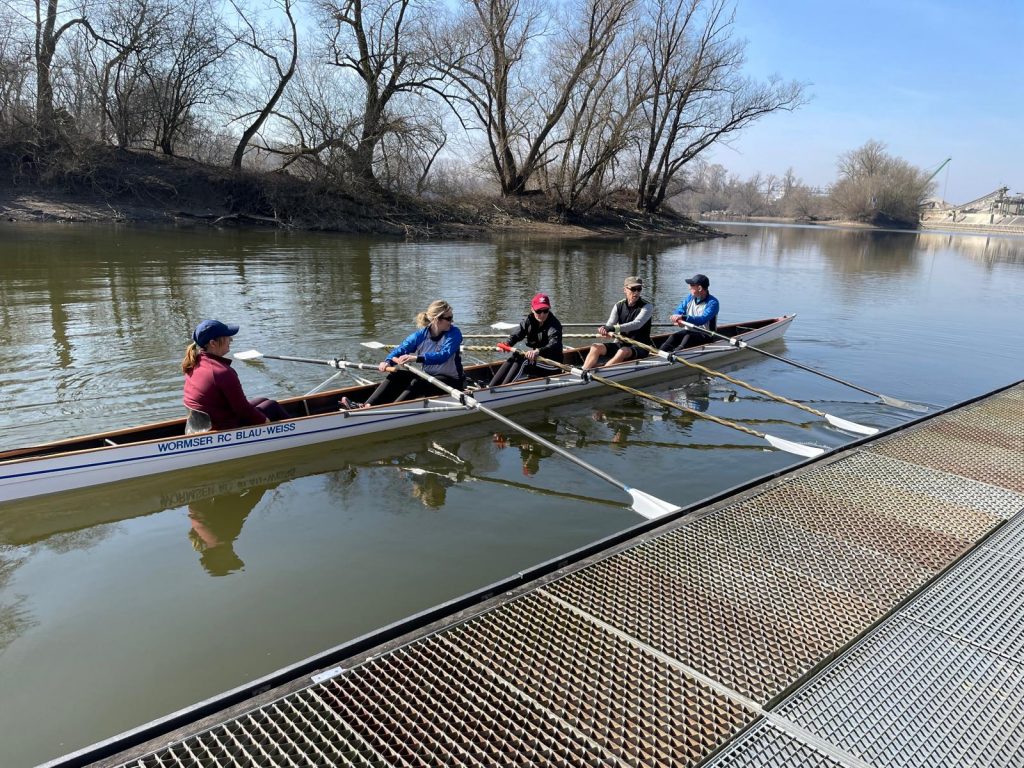 Um die Zeit bis zum Dauertraining draußen interessant zu gestalten, konnten wir am Sonntag, 9.3.2025 bei bestem Ruderwetter erstmals auch mit Schnupperern auf das Wasser nach Lampertheim gehen. Es ist immer wieder sehr schön zu sehen, wie die Schnupperer das Boot und Wasser genießen am am liebsten gar nicht mehr aussteigen.