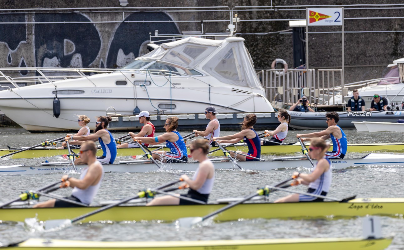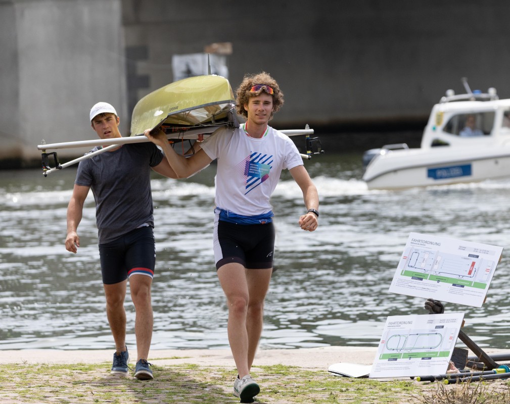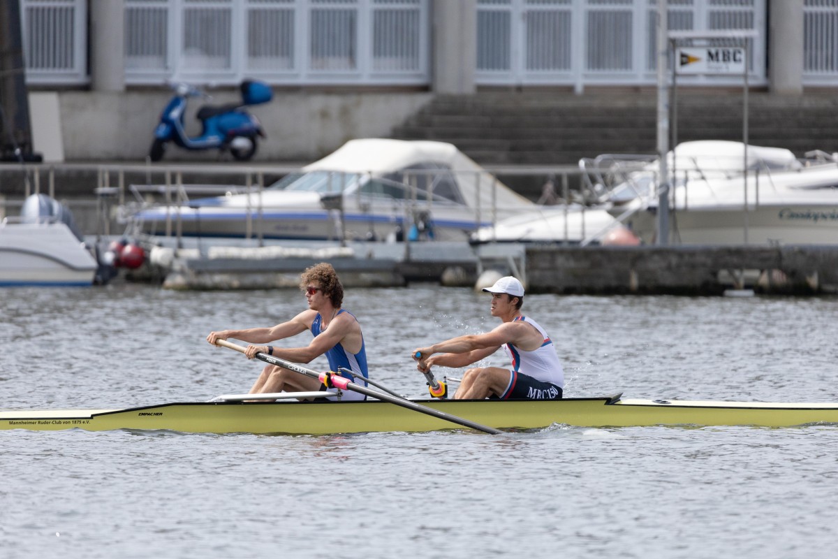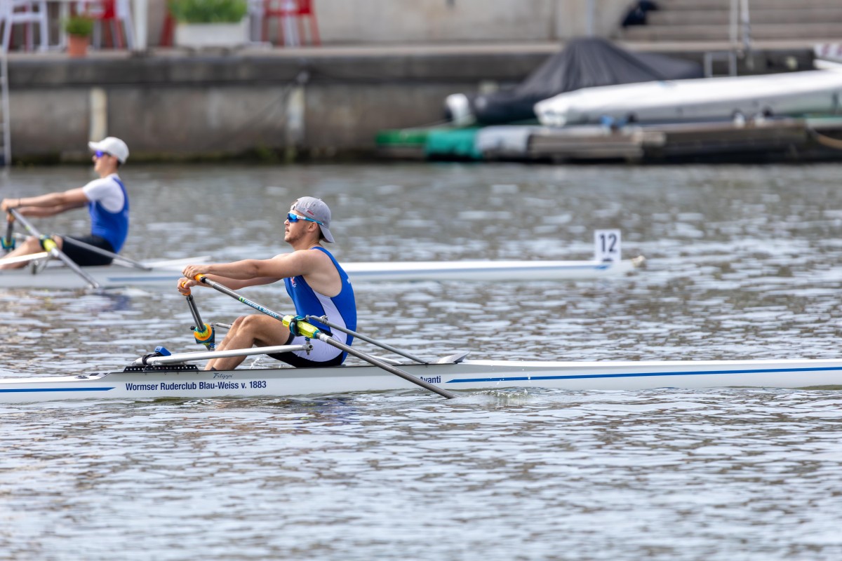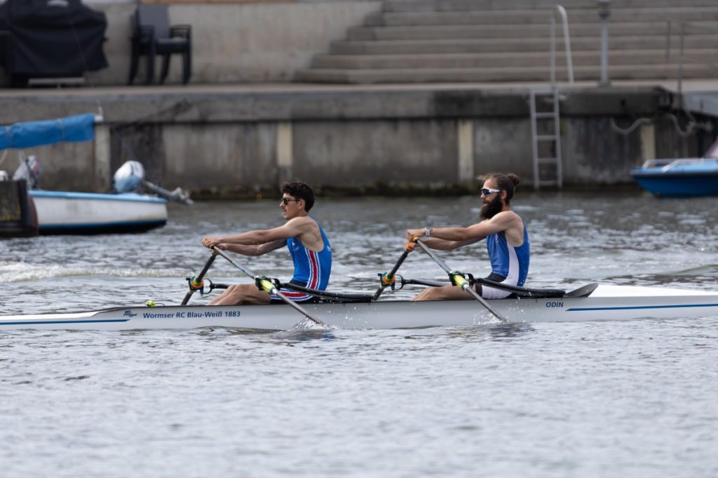 Auch im geplanten schweren Senior-Vierer von Moritz Nultsch mit drei Mannheimern gab es einen Ausfall zu beklagen, weshalb sie ihr Flaggschiff, den Vierer ohne, abmelden mussten. Im Doppelvierer, dem ersten Rennen des Wochenendes, sprang Jonas Burkhardt als Ersatzmann ein. Ungeachtet der fehlenden Vorbereitung gelang den vier Sportlern der Sprung auf Platz zwei, einem zufriedenstellenden Ergebnis. Im direkten Anschluss ging es für Jonas und Moritz in den Doppelzweier. Das 15-Boote-Feld wurde in vier Abteilungen auf vier Bahnen über die 1500-Meter-Strecke geschickt. Die Wormser konnten überzeugen und sicherten sich mit der drittschnellsten Zeit des Tages einen tollen zweiten Platz.