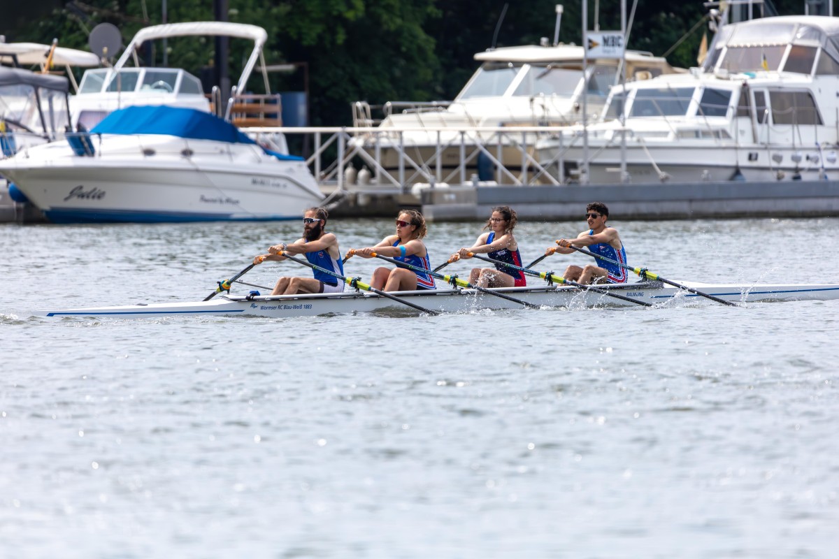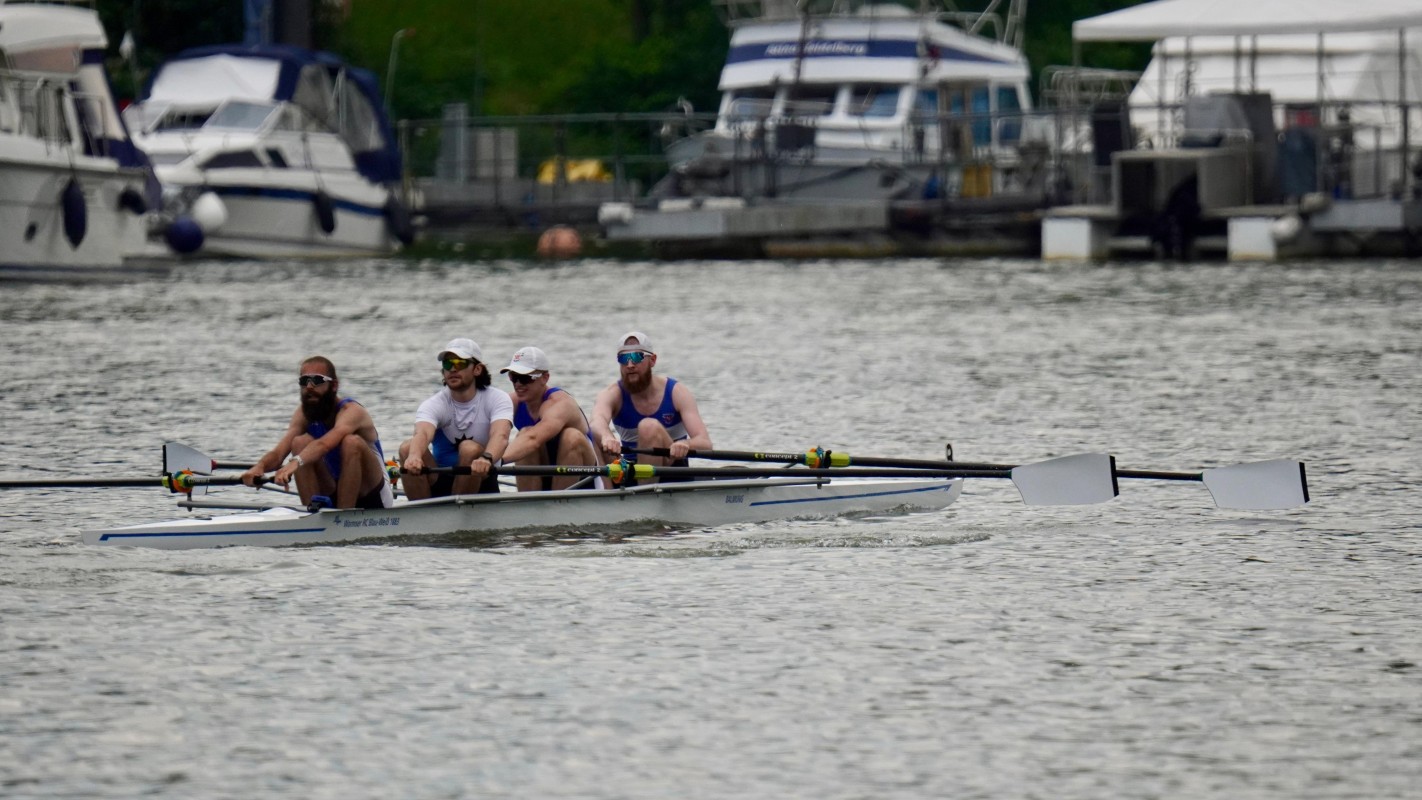Für die Teilnahme an der Regatta trat auch Lukas Schambach den langen Weg aus Bremen nach Heidelberg an. Er startete an beiden Tagen im leichten Doppelzweier, den Lukas mit seinem Bremer Partner dominierte und zwei Siege zur Wormser Statistik beisteuern konnte. Im Anschluss, noch beflügelt von den exzellenten Leistungen im Zweier, sprangen die beiden in den Mixed Doppelvierer, in dem zwei Männer und zwei Frauen gemeinsam an den Start gehen. Die erfolgreiche Koproduktion von Worms und Bremen gab mit einem zweiten und einem dritten Platz erneut Grund zur Freude.
