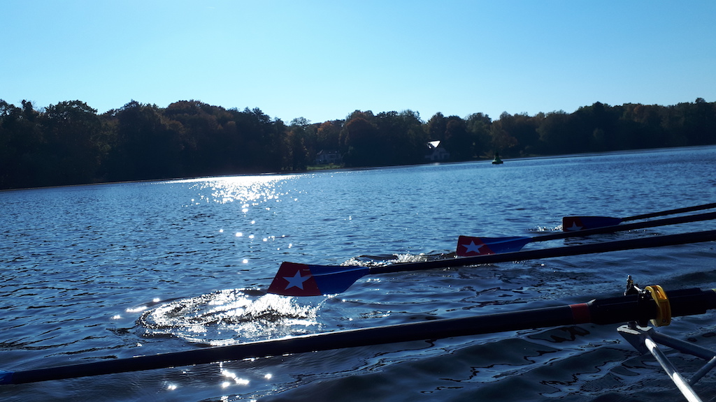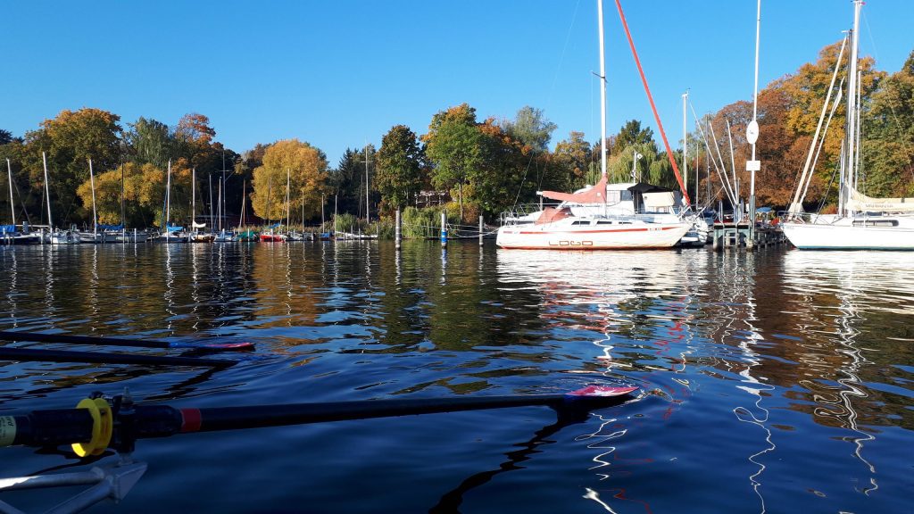 Schon beim Ablegen kommt man in Kontakt mit Berliner und deutscher Geschichte. Der Berliner RC Welle-Poseidon, bei dem ich an diesem Wochenende mitrudern darf, liegt am Großen Wannsee zwischen Liebermann-Villa und Haus der Wannsee-Konferenz. Der Verein selbst hat auch eine beeindruckende Geschichte. Ende des 19. Jahrhunderts wurde er in Grünau im Südosten Berlins gegründet und war eigentlich ein ganz normaler Ruderverein – bis es nicht mehr normal war, dass Juden und Christen in einem Verein zusammen ruderten. 1936 musste der Verein sich in Jüdischer RC Welle-Poseidon umbenennen und wurde nach den Olympischen Spielen aus Grünau vertrieben. Nach dem Zweiten Weltkrieg hat er eine neue Heimat am Wannsee gefunden.