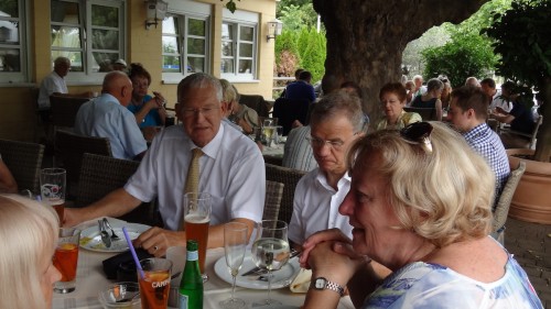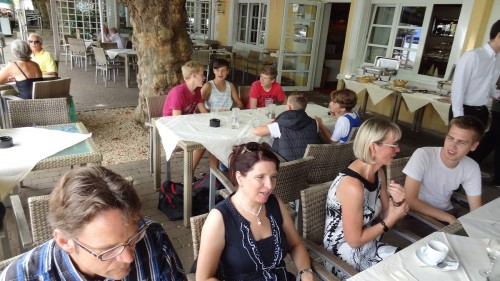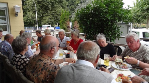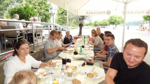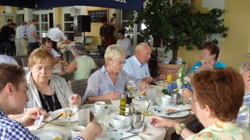 Nach den offiziellen Handlungen fand anschließend das „Frühstück der Ruderer“ statt. Im Al Fiume hatte Chef Gaetano Onolfo ein Ruder-Buffet für verschiedene Geschmäcker aufgebaut. Für Gäste vergangener Jahre war eine Neuerung auffällig: es wurden nur wenige „Hüte“ getragen und es gab keine Prämierung des schönsten Hutes. Der sonnigen Stimmung und den vielen guten Gesprächen untereinander tat dies aber keinen Abbruch.