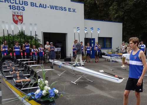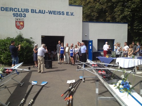Der Kauf neuer Boote ist für einen Verein eine tolle Sache. Er zeigt einerseits, dass Bedarf besteht und andererseits, dass die erforderlichen finanziellen Mittel vorhanden sind. Die Finanzierung der Boote ist dem Umstand zu verdanken, dass momentan kein Bauprojekt finanziert werden muss und dass im Verein zahlreiche Trainer und Übungsleiter tätig sind, die im Verein ehrenamtlich tätig sind und sogar auf ihr Aufwandsentschädigung verzichten. Eigentlich sollten vier neue Boote getauft werden. Da der Liefertermin eines Gig-Doppelvierer ohne Steuermann nicht eingehalten werden konnte, lagen nur drei neue Rennboote geschmückt zur Taufe bereit.