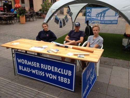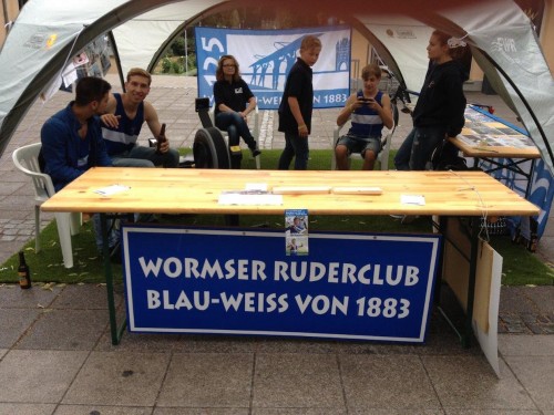 Neben zahlreichen Wormser Sportvereinen war nun erstmals auch unser Wormser Ruderclub Blau-Weiss dort vertreten, um auch diese traditionsreiche Sportart dem Wormser Publikum zu präsentieren. Unser Ausstellungszelt fand seinen Platz zwischen den beiden „Verkehrshäuschen“ gegenüber dem Lutherplatz.
