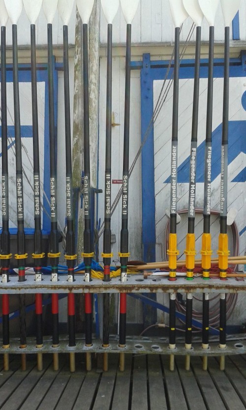 Aber erstmal ging es nach einem informativen Rundgang im und um das Bootshaus herum in die E-Boote. Wir wollten Fluß-auf nach Rodenkirchen rudern und dort am Restaurant „Albatros Bootshaus“ anlegen, damit auch unsere Mägen sich wohl fühlten.