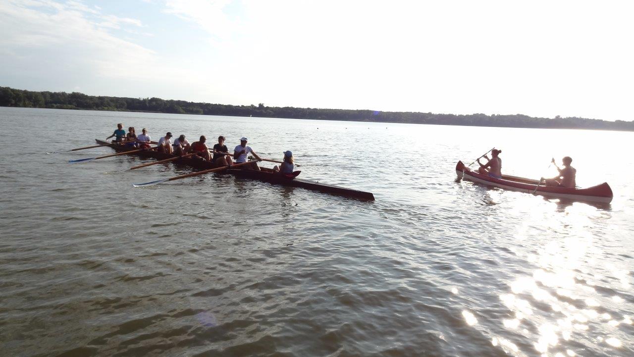 Einer der Höhepunkte der Fahrt war das gemeinsame Abendessen in einem bayerischen Restaurant mit Haxn, panierter Weißwurst, Schnitzeln und Gänsekeulen. Niemand hätte eine solche Gastronomie in der Gegend um Tata erwartet. Den letzten Tag unseres Besuchs verbrachten wir am See mit Windsurfen, Rudern, Baden und dem Basteln von Armbändern, bevor wir uns abends noch einmal zu einem gemütlichen Abendessen mit Erinnerungen,(alkoholischen) Getränken, Langosch!!!!! zusammenfanden, während die Abreise immer näher rückte.