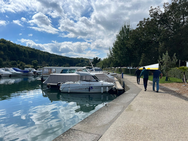 Ab geht die Fahrt am Freitagmorgen mit dem ersten spannenden Moment: für welche Strecke wird sich das Orga-Kommittee der Bilac entscheiden? Alle hoffen auf die (einfach schönere) Seestrecke von Neuchatel nach Biel, aber um 10:01 erreicht uns die Nachricht: es ist die Flussstrecke, wegen des angesagten Windes. Das heißt vor allem 6 km mehr als die Originalstrecke, 18 km gegen die Strömung und 18 km zurück nach Solothurn. Ich würde nicht von überschäumender Freude in unserem Fahrzeug sprechen... aber tatsächlich kennen viele der Wormser Teilnehmer aus 2022 auch schon die Flussstrecke - Herausforderung, aber machbar. Ein Vorteil: wir sind deutlich früher am Start, da wir schon in Solothurn den Hänger abstellen können. Die lokalen Gegebenheiten zum Einwassern am Samstagmorgen kennen wir auch schon, so dass wir beiden Booten einen Top-Platz sichern können. In Solothurn treffen wir den Cheforganisator, den wir schon vom letzten Jahr kennen. Er empfiehlt uns für den Morgen "eine Extra-Ovomaltine" (bitte mit Schweizer Akzent lesen), da mit viel Wind zu rechnen sei... Neben dem Streckenentscheid ist auf der Bilac-Website auch ein Hinweis zur Quagga-Muschel zu finden - eine invasive Muschelart, die sich in Wasserleitungen breit macht. Deren Verbreitung soll durch sorgfältiges Bootputzen und Trocknen verhindert werden. Wir überlegen kurz, ob die Quagga-Muschel vielleicht ein probates Mittel gegen die Lampertheimer Wasserlinsen darstellen könnte, entscheiden uns aber gegen das Experiment und folgen allen Anweisungen penibel.